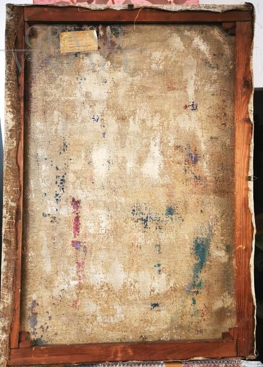 Quadro olio su tela di Tina Conti, soggetto astratto, datato 1962 (potrebbe anche essere 1952 ma optiamo per 1962). Dimensioni 70 x 100 cm, senza cornice.