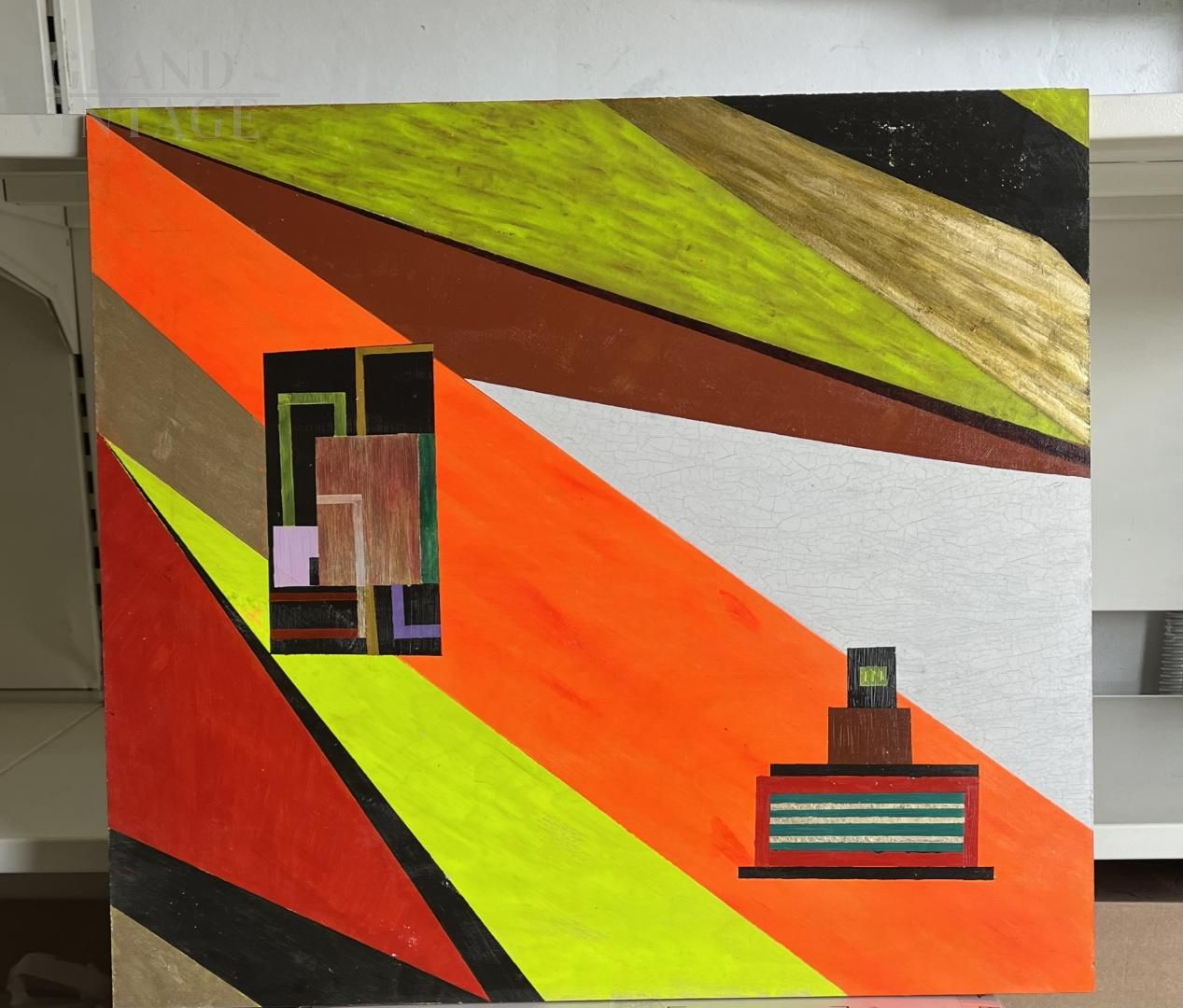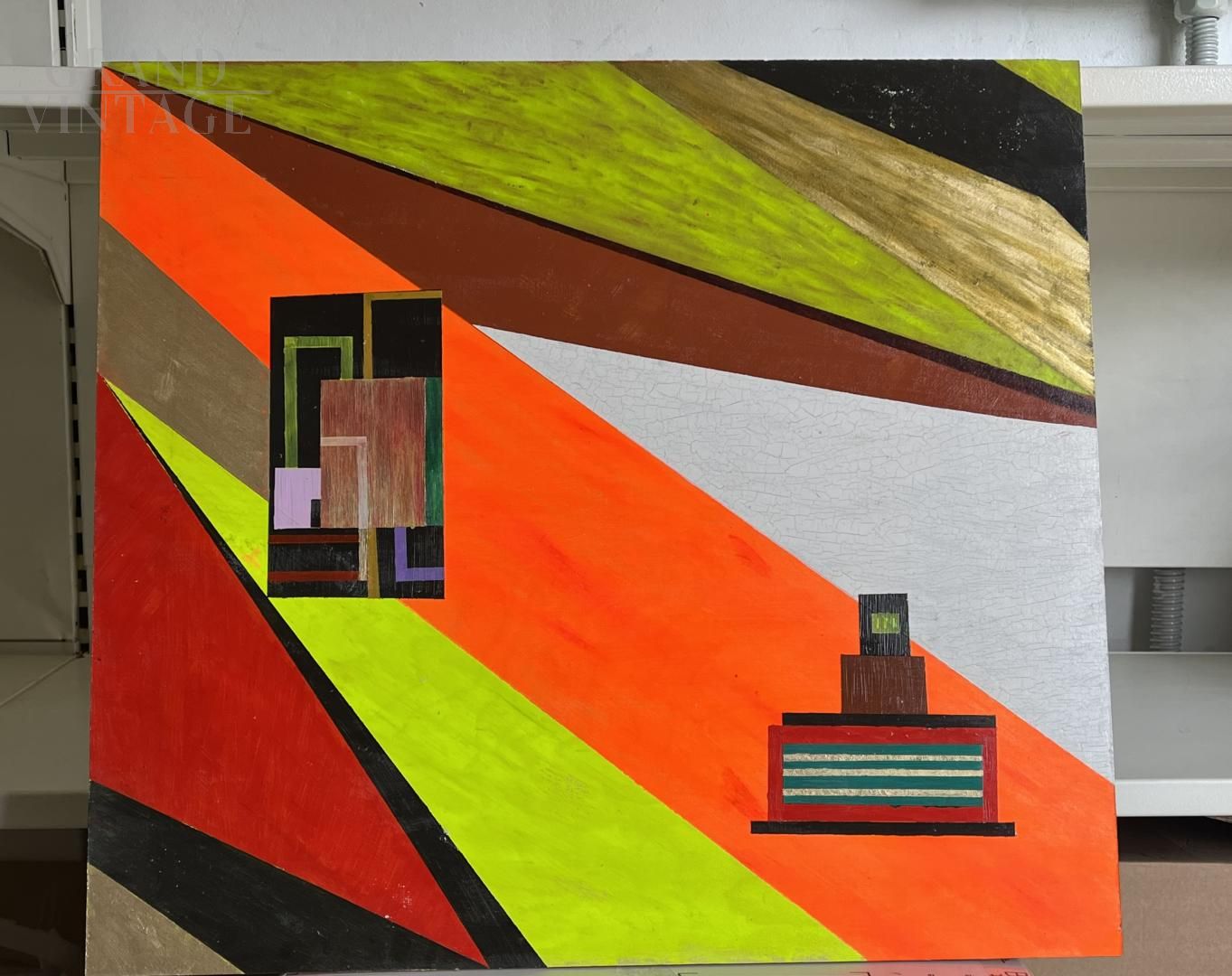 Dipinto geometrico astratto di Bruno Carlino a smalto e tempera su tavola, 2023