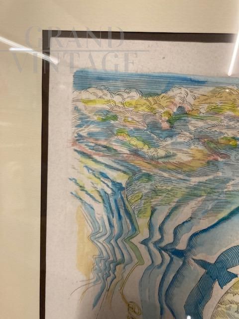 Dipinto incisione surrealista acquerellata di Gordon Faggetter, 1976
