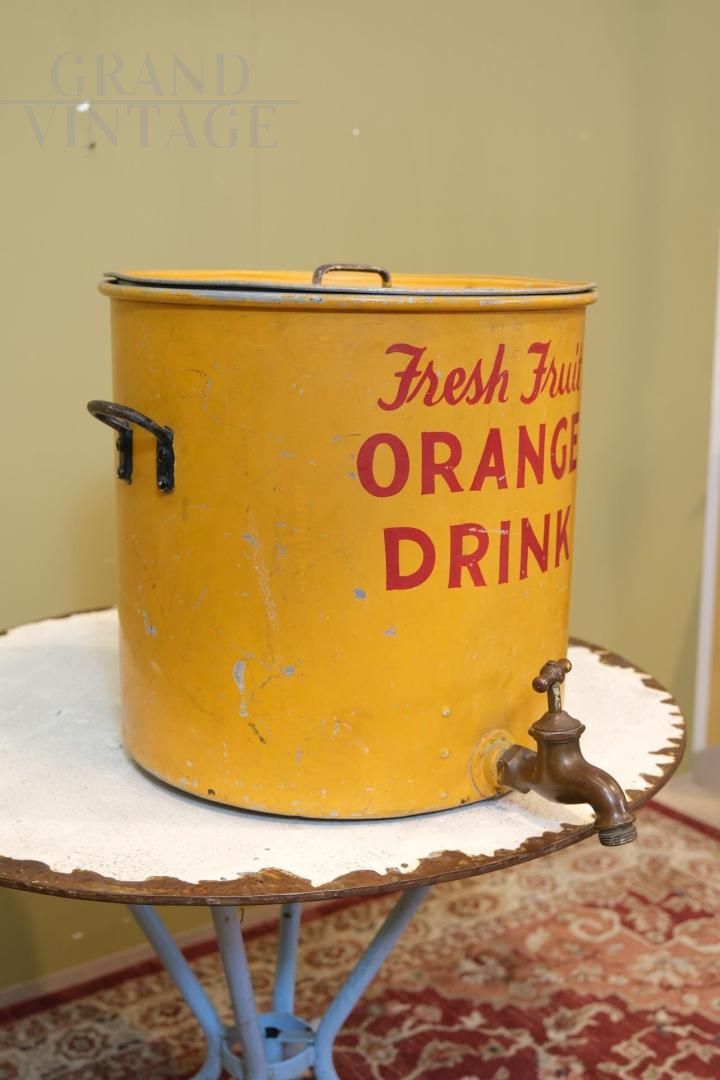 Col suo giallo acceso e il lettering vintage, questo distributore di aranciata con rubinetto proviene dall'America, riporta la scritta Fresh Fruit Orange Drink ed è perfetto per rievocare l’energia e l’allegria delle estati passate, aggiungendo personalità agli spazi.