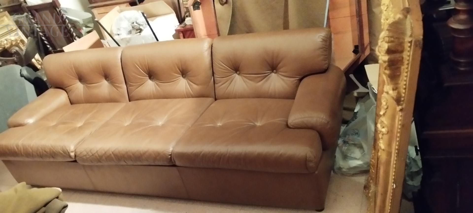 Divano a tre posti in pelle marrone, design di Ranzani per Elam, modernariato italiano anni '70.