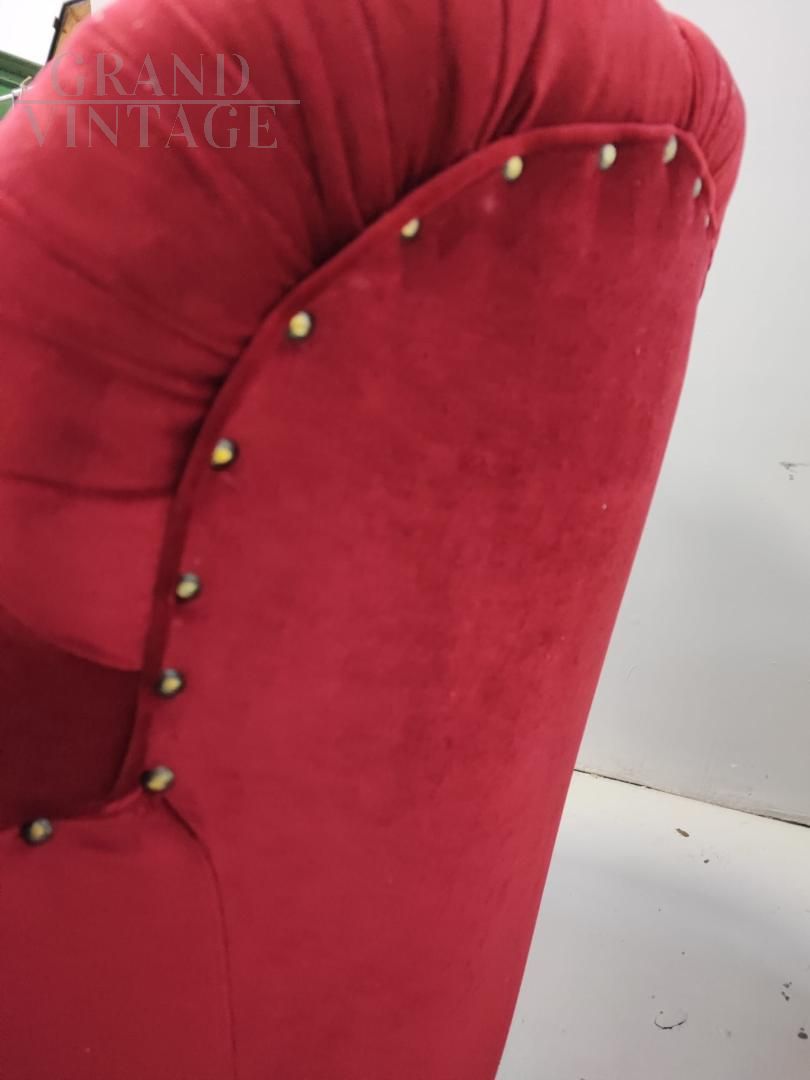 Divano anni '40 in velluto rosso