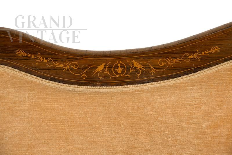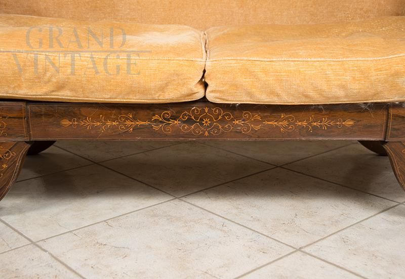 Divano antico Carlo X Francese in legno esotico pregiato con intarsi