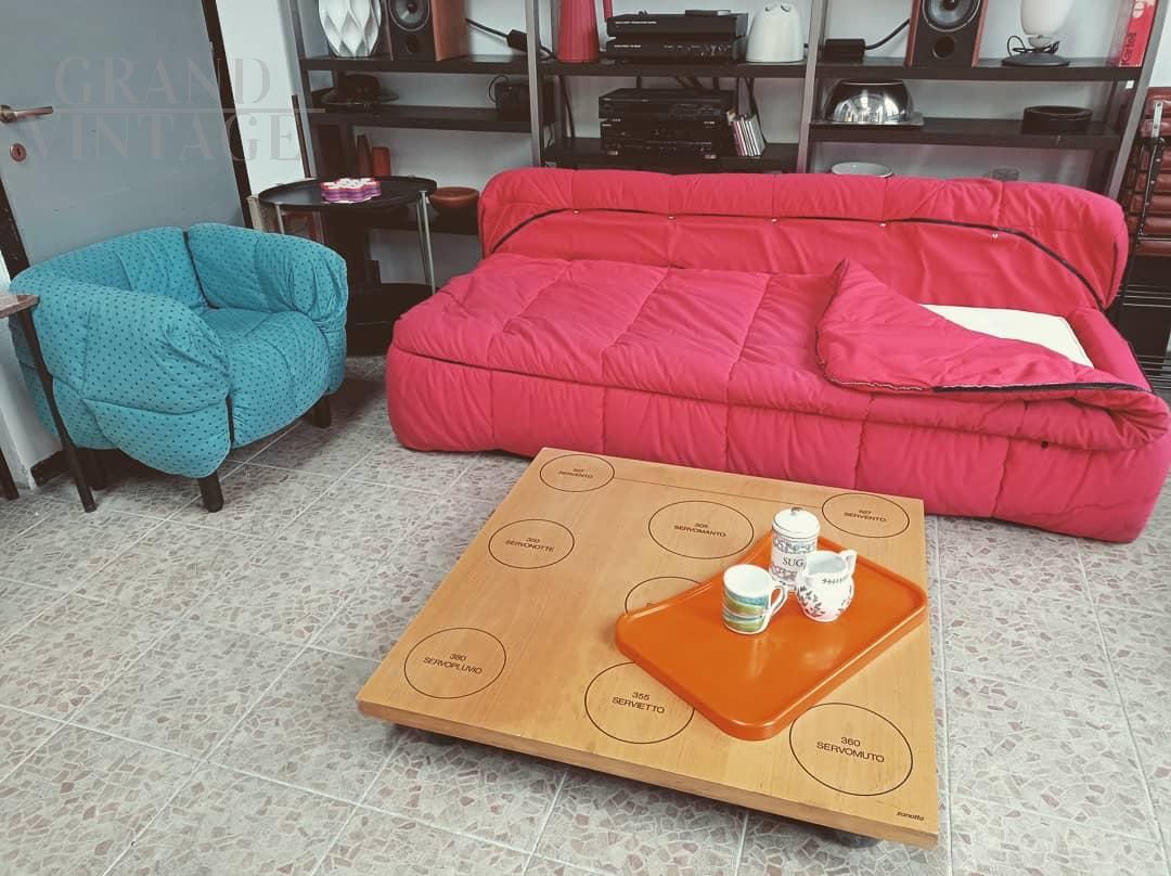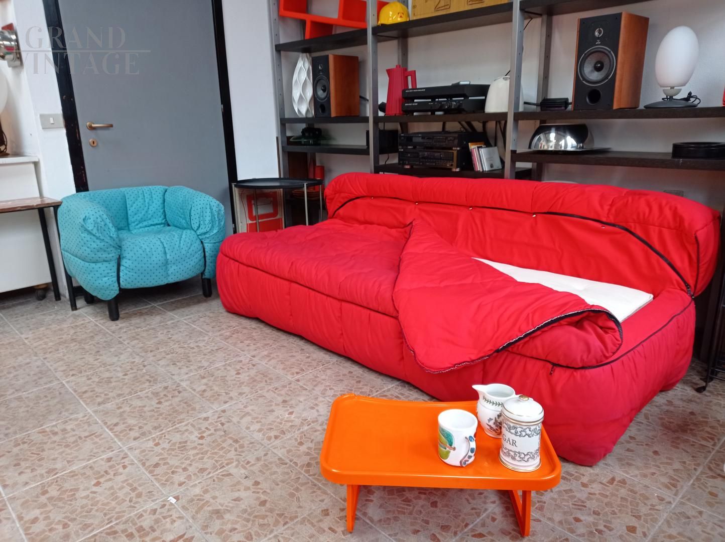 Divano di Cini Boeri per Arflex, modello Strips. La serie The Strips ha vinto il Compasso d'Oro grazie al suo stile che ha rivoluzionato, con il suo rivestimento che ricorda una trapunta di un letto, l'ambiente formale del soggiorno. La versione daybed è quindi la Strips per eccellenza.