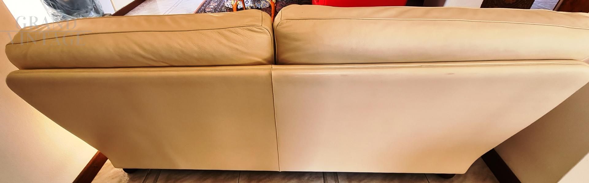 Bellissimo divano Poltrona Frau modello Dream in vera pelle color bianco, design ricco di comfort e grande cura nei dettagli. Il bracciolo a ricciolo, il doppio bottone e il filetto in pelle per i cuscini dello schienale creano forme eleganti che sono perfette per il tuo living. Per questo divano, Poltrona Frau ha creato un rivestimento non sfoderabile, facile da pulire e molto resistente, e un'imbottitura in poliuretano.