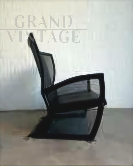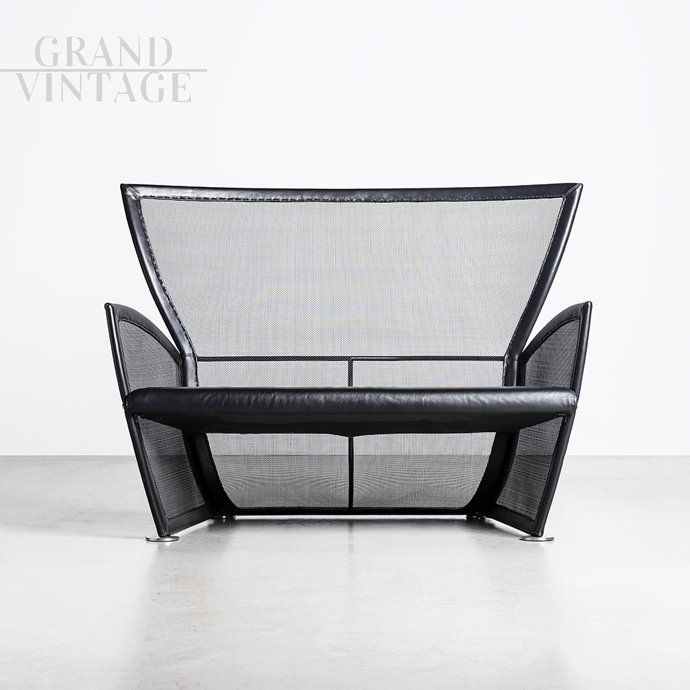 Divano Privé di Paolo Nava per Arflex con struttura a rete tubolare in alluminio e rivestimenti in pelle nera, il design accattivante di adatta bene ad ambienti di modernariato o industriali. Paolo Nava è un'icona del design che ha ideato realizzato molti progetti per famosi marchi nazionali ed internazionali.