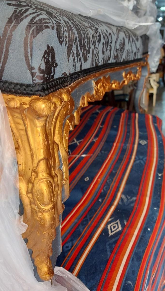 Dormeuse antica Luigi XIV rivestita in seta San Leucio blu