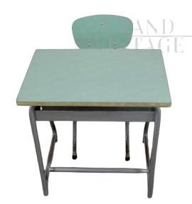Banco scolastico vintage in formica verde con sedia, anni '70