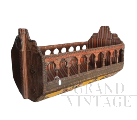 Antica culla fiorentina del XVII secolo in legno e tessuti antichi