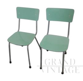 Coppia di sedie scolastiche da bambino in formica verde, anni '70