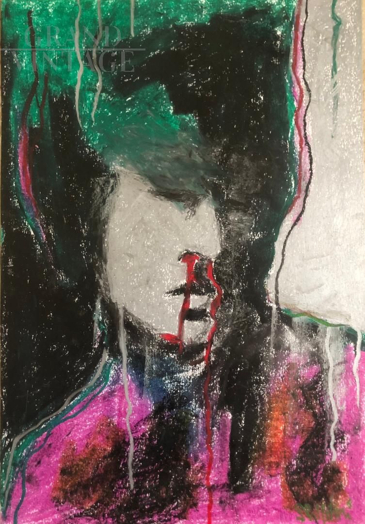 Dipinto di Salvo Pillitteri dal titolo Epistassi, olio e tempera su cartone, un gioco di colori con il sangue che cola dal naso del protagonista di questo dipinto che si mescola e si fonde con gli altri colori che compongono quest’opera, ideale per ambienti moderni ed urbani. Dipinto munito di certificazione d’originalità firmato dall’artista.