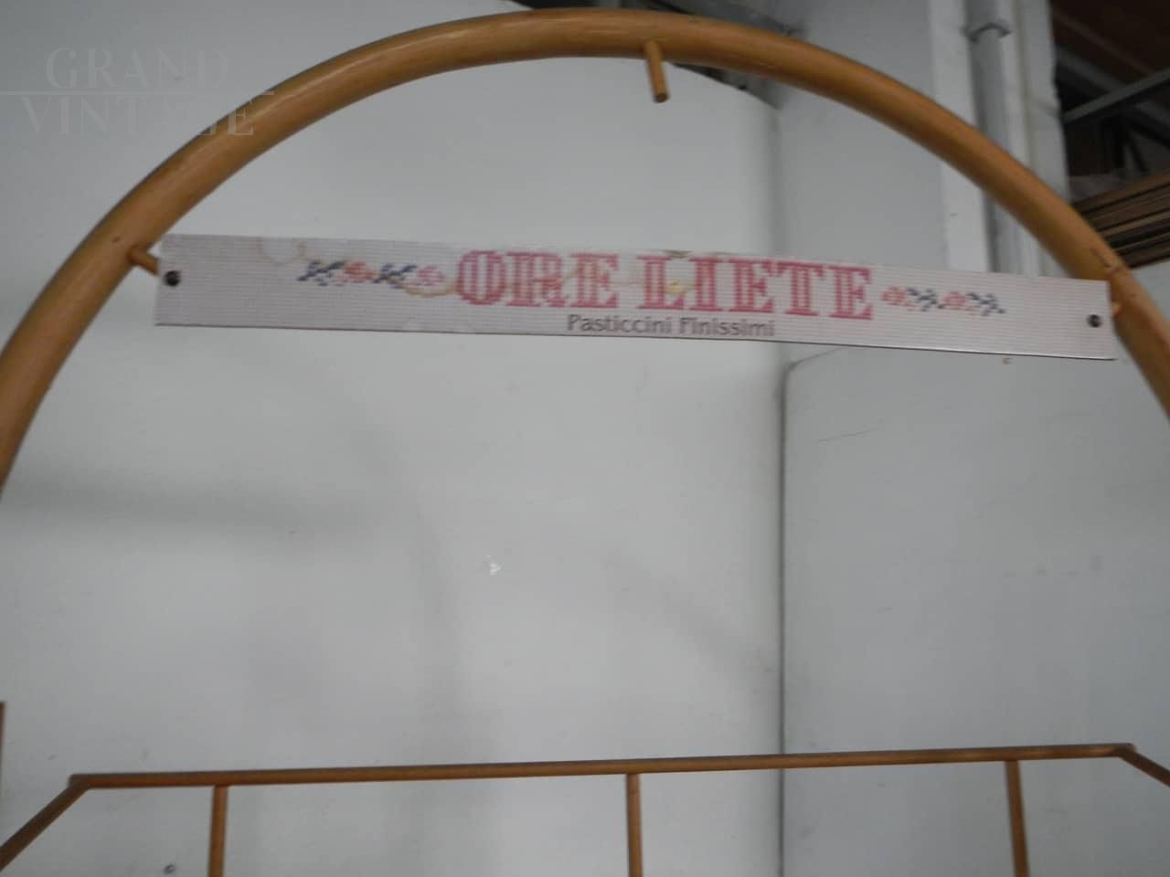 Espositore da pasticceria vintage in bamboo con pubblicità Ore Liete, anni '70