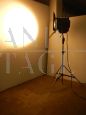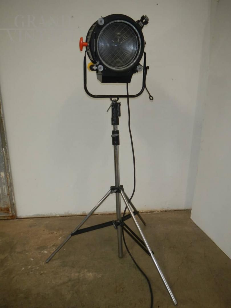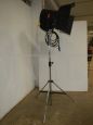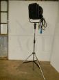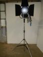 Faretto funzionante con lampadina alogena da 2 kw in 220 volt, cavalletto ditta Manfrotto misura h da cm 180 a cm 260, con regolazione di intensità di luce con l'utilizzo della manopola gialla. Cavo originale da 3mt con spina CEE industriale.