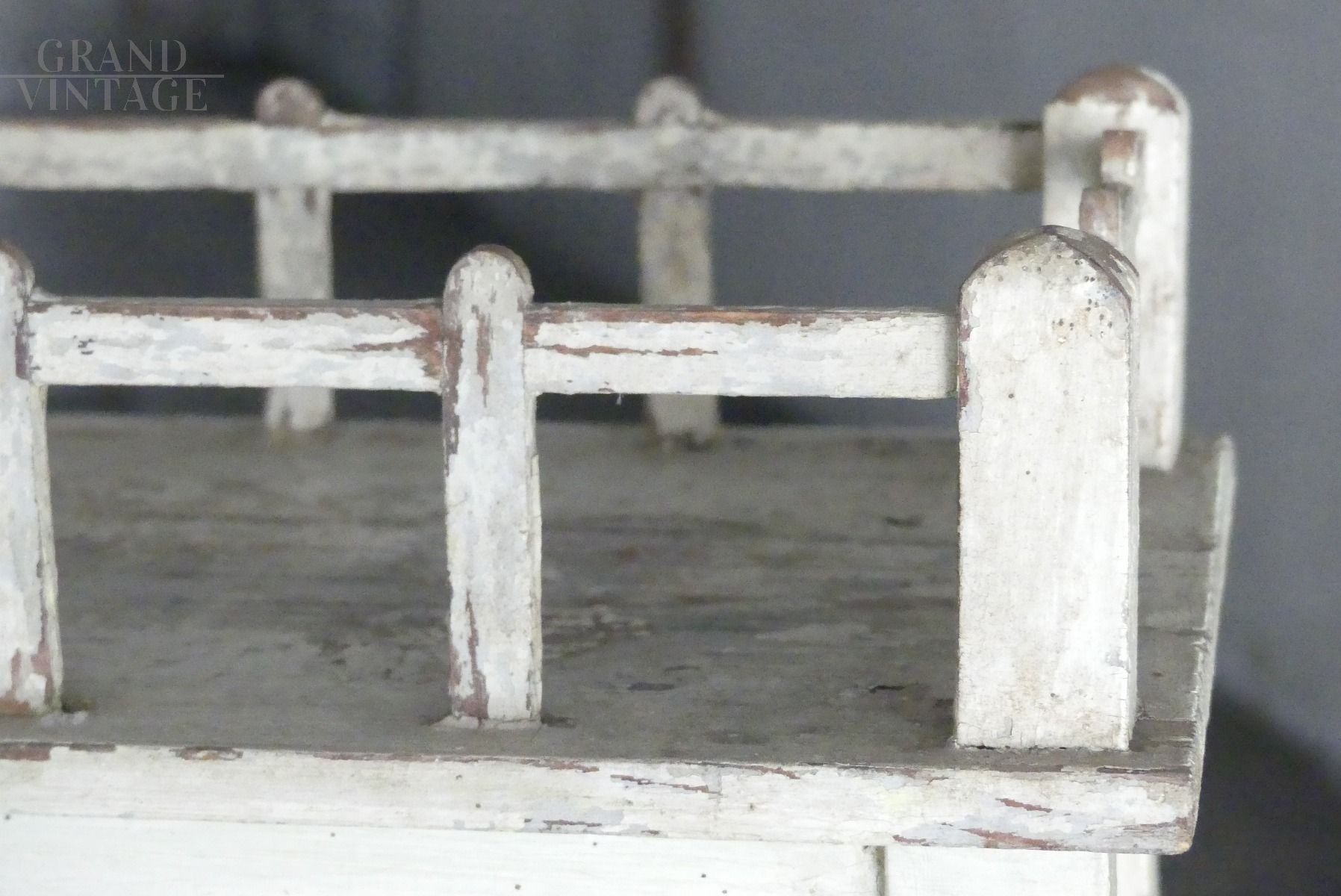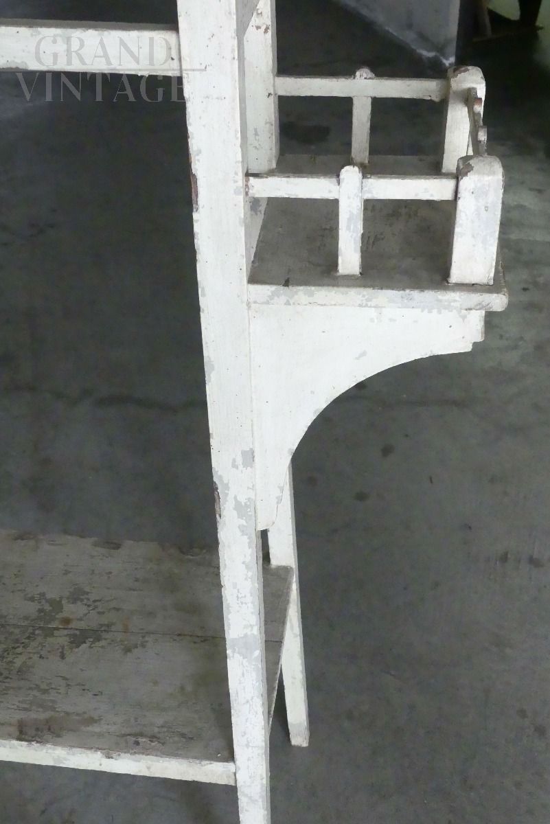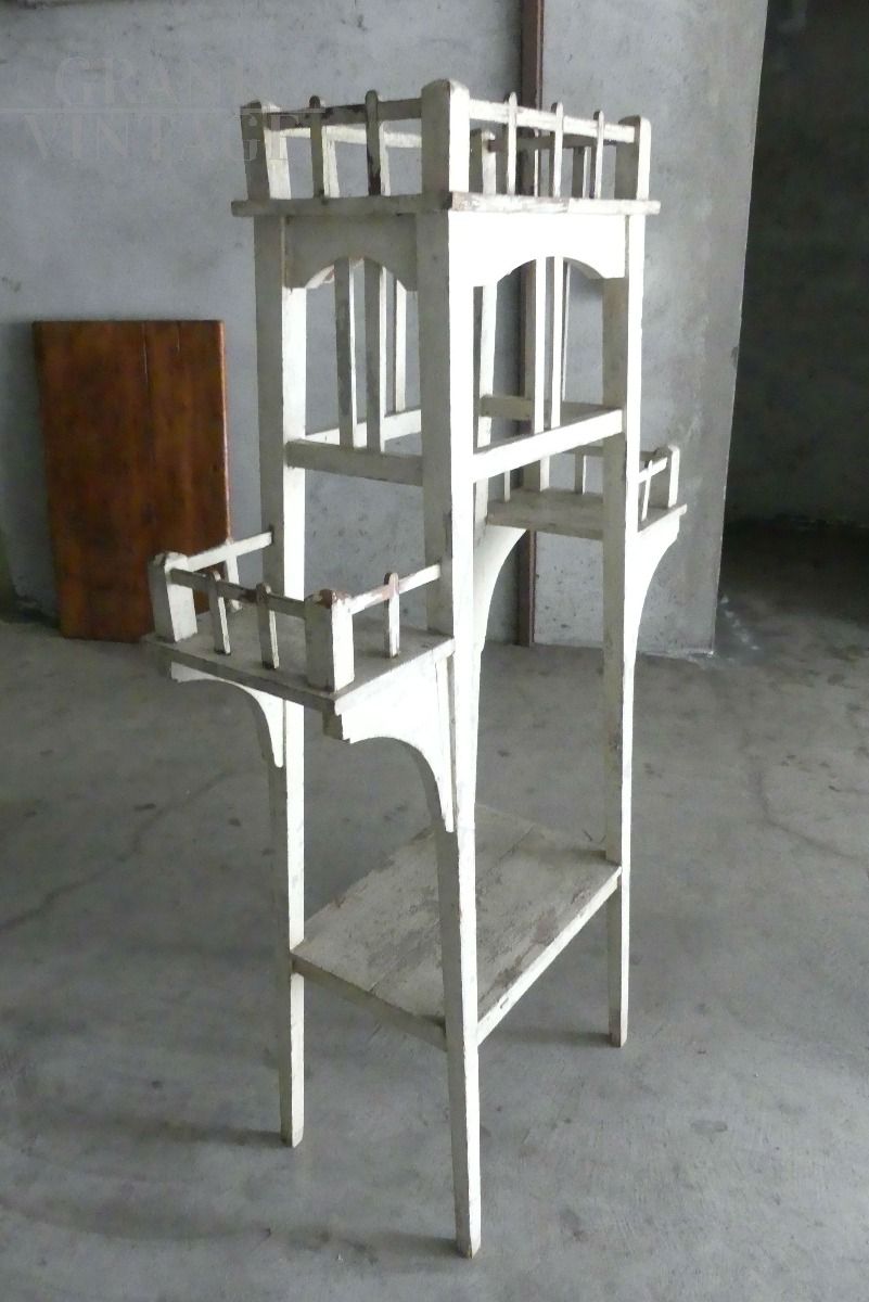 Fioriera portavasi a piani in legno pittura bianca originale, della fine dell'800, perfetta per reggere piante pendenti, ottima per un contesto elegante o shabby chic.