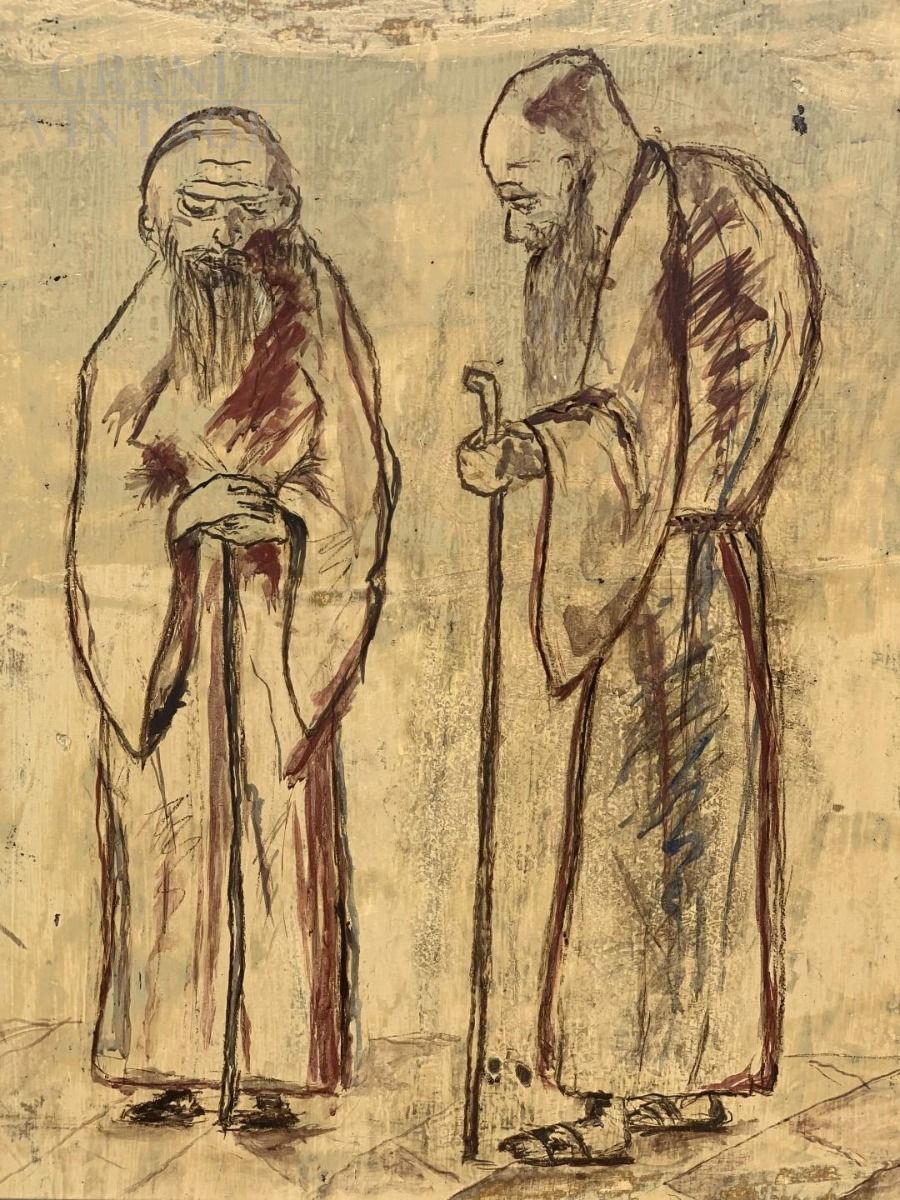 Frati, dipinto a tecnica mista su tavola del xx secolo