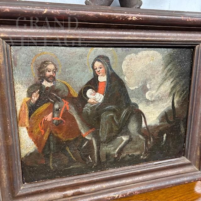 Fuga d'Egitto - Dipinto antico ad olio del XVII secolo di scuola italiana