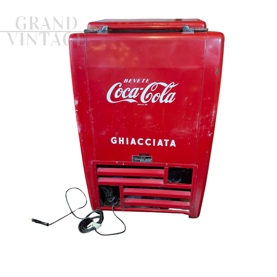 Frigorifero ghiacciaia a pozzetto Coca Cola prodotto dall'azienda statunitense Majestic negli anni '50, nelle sue condizioni originali e perfettamente funzionante. Questo splendido pezzo di design non è mai stato restaurato e ha avuto un solo proprietario, il che lo rende un vero oggetto da collezione. Con il suo iconico marchio Coca Cola e la classica combinazione di colori rosso e bianco, questa ghiacciaia aggiungerà sicuramente un tocco di fascino retrò a qualsiasi collezione vintage o spazio interno.