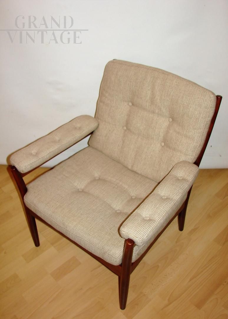 Poltrona G. Mobel per Göte Möbler in tessuto beige, Svezia anni '70
