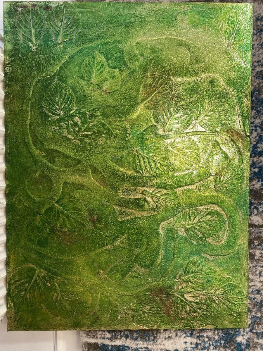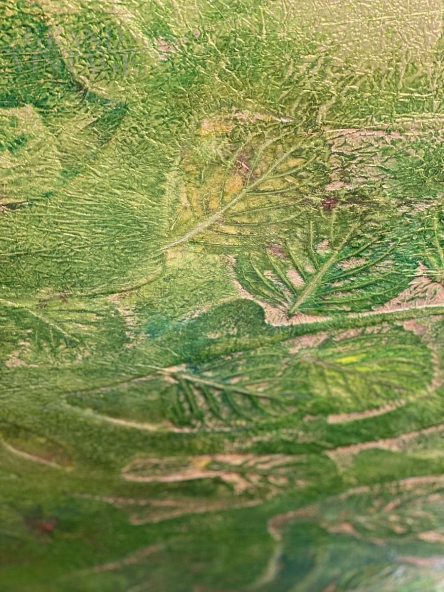 Gold Leaves - dipintio di Tony Wetfloor, tecnica mista acrilico e resine epossidiche su lastra in alluminio alubond.