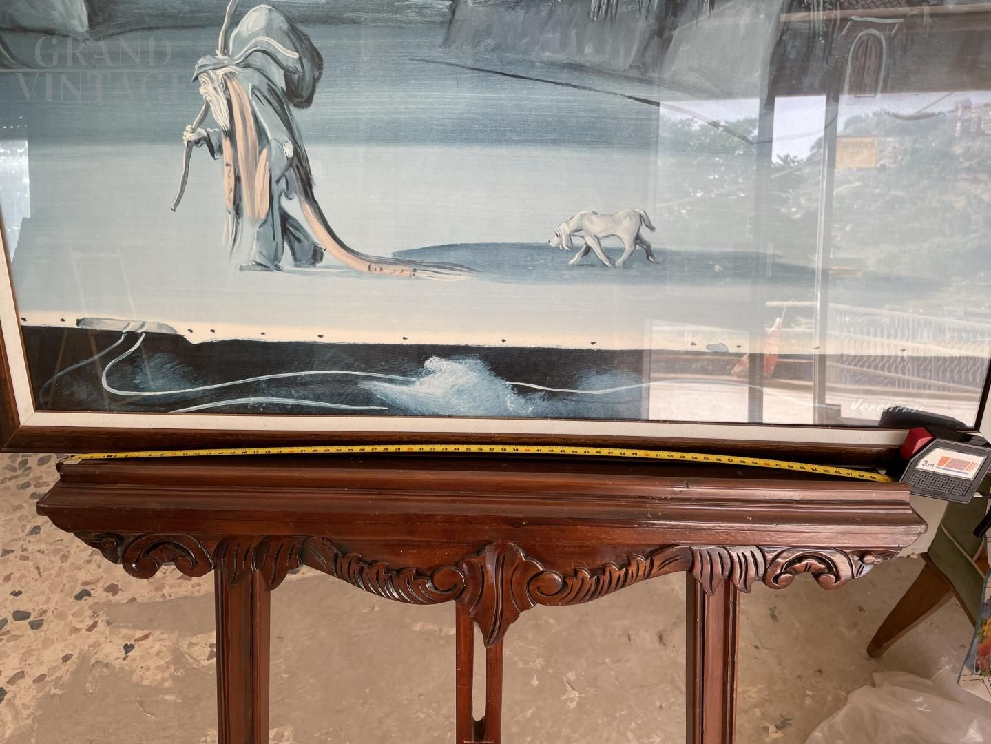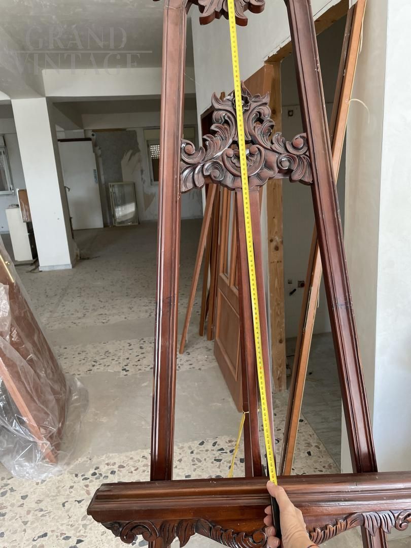 Grande cavalletto espositore portaquadro vintage francese finemente intagliato, in legno massiccio di faggio con spalletta, L 70 cm, H 220 cm, dimensioni quadro interno 120 x 70 cm. Intatto, ottimo oggetto per collezionisti, musei, gallerie o artisti.