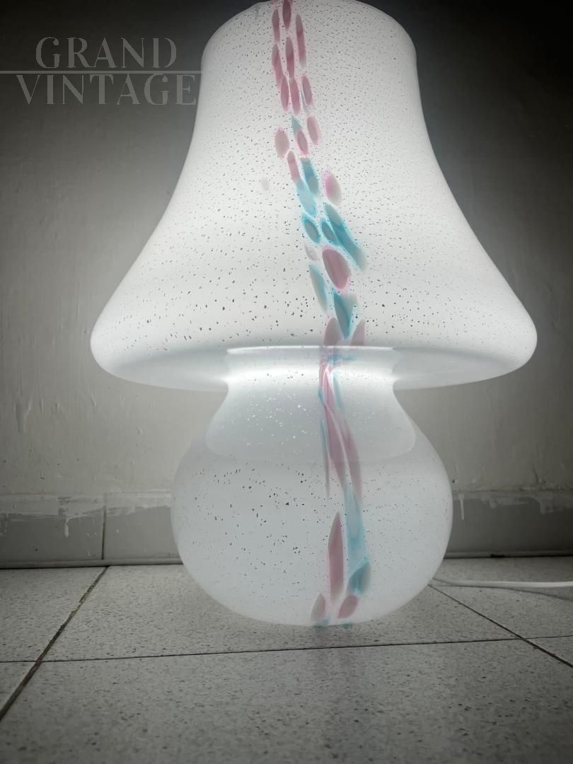 Grande lampada a fungo in vetro di Murano con inserti azzurri e rosa