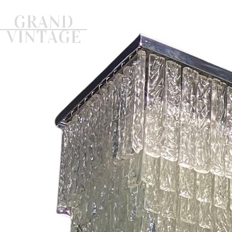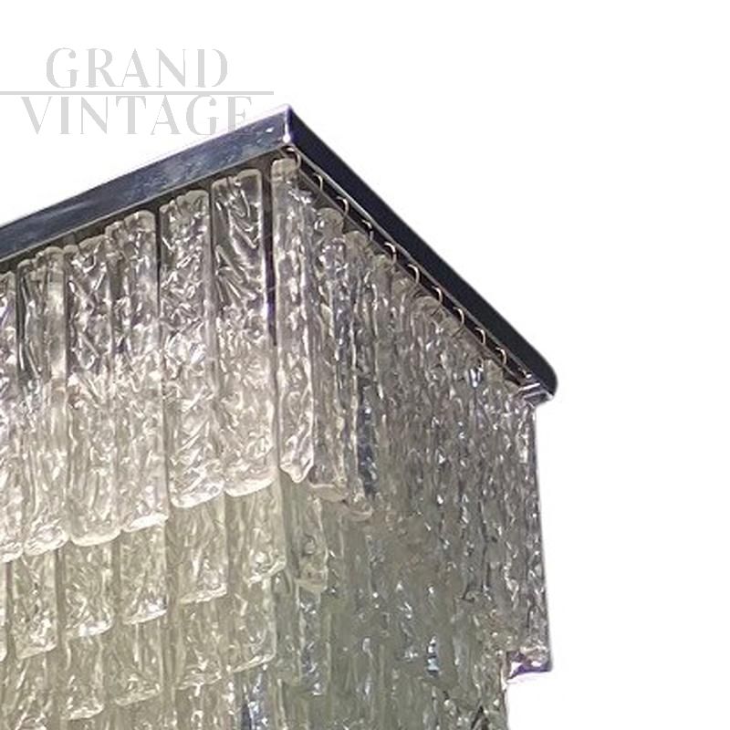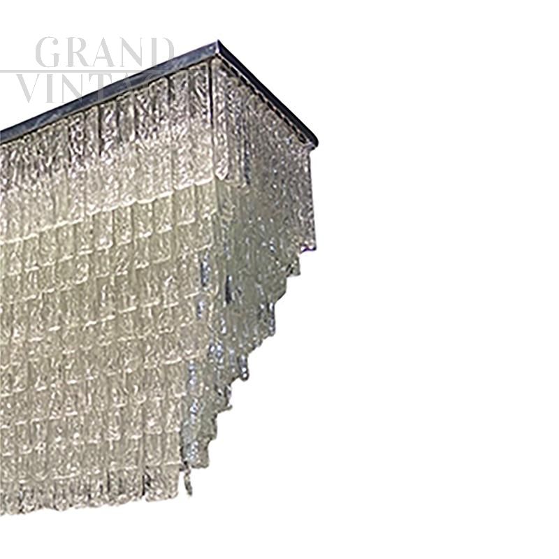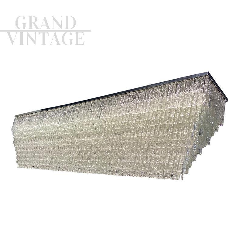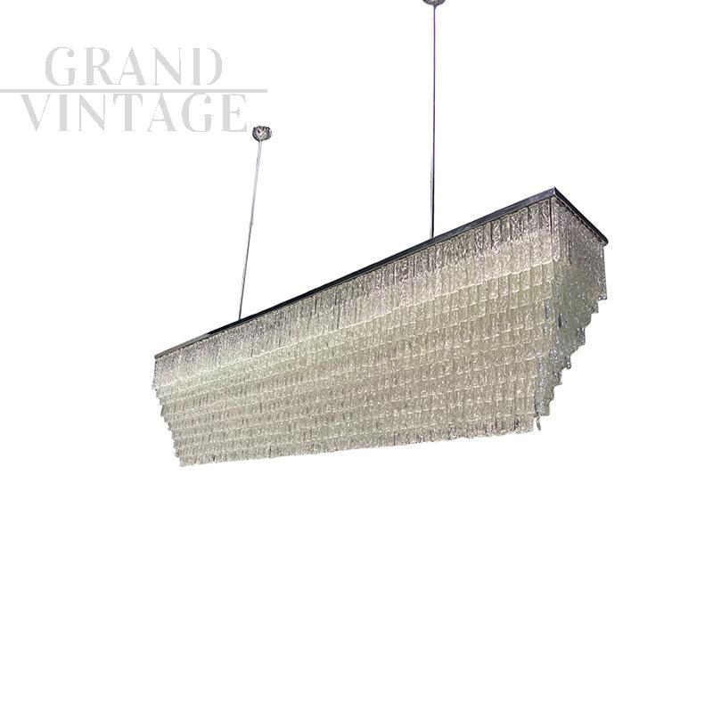 Elegante lampadario rettangolare orizzontale composto da 1495 listelli in vetro di Murano artistico trasparente.