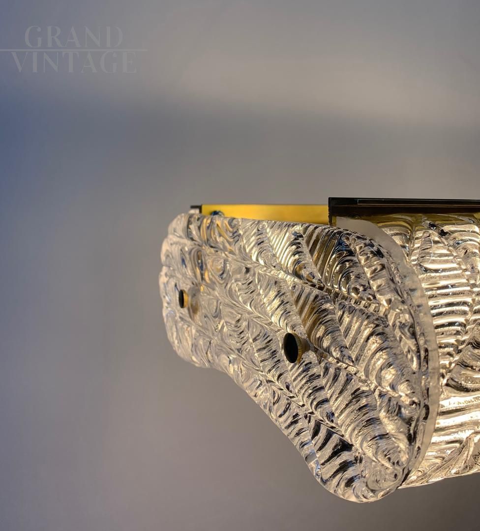 Grande lampadario orizzontale in vetro di Murano e ottone