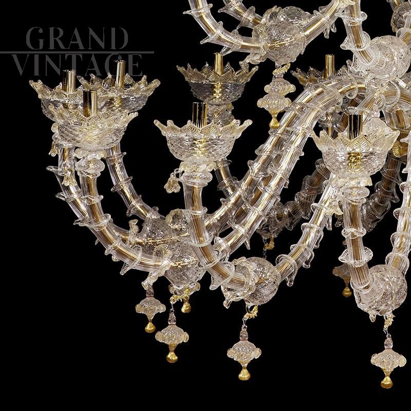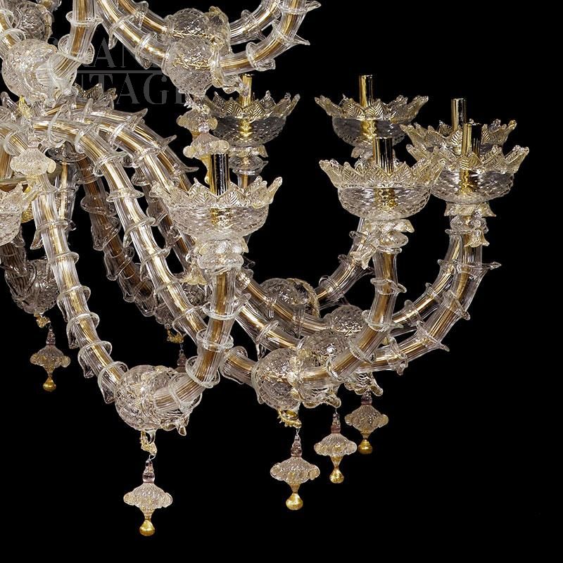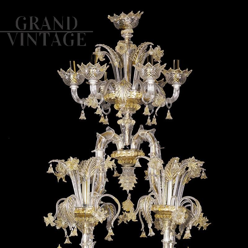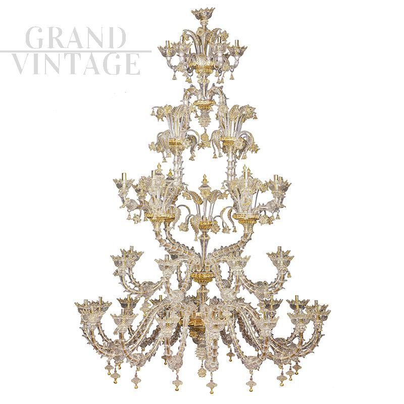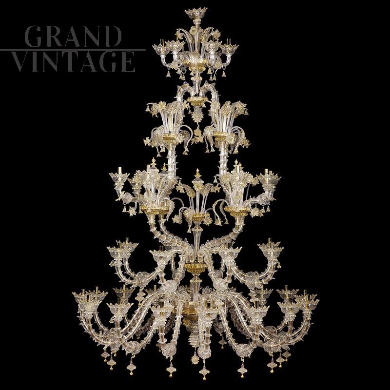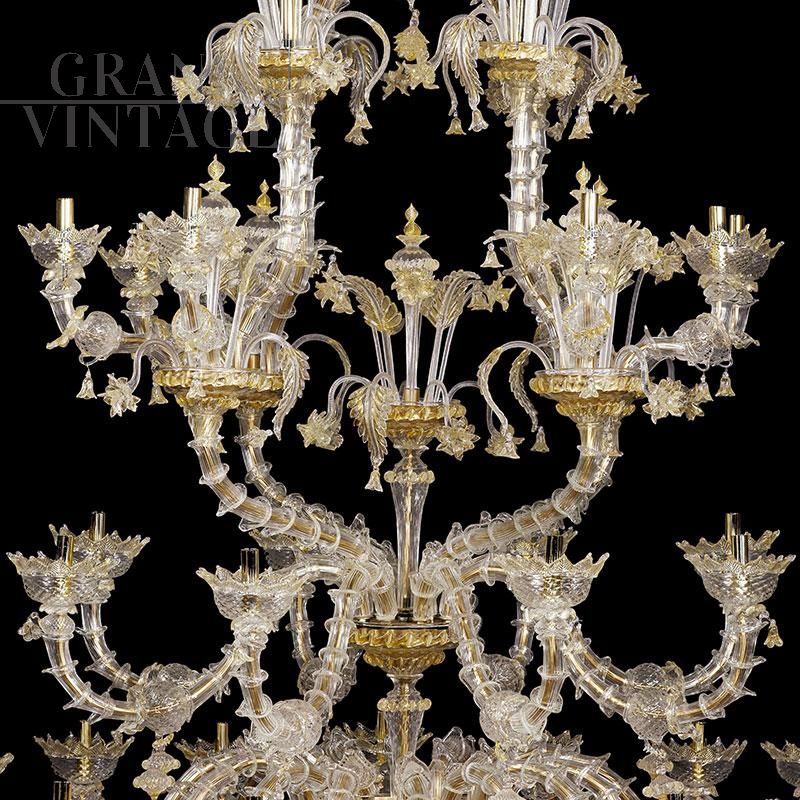 Grande lampadario Rezzonico in vetro di Murano cristallo e oro con 42 luci