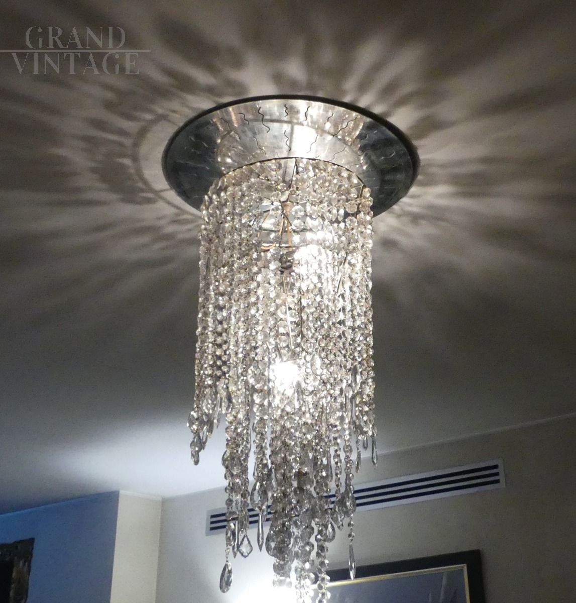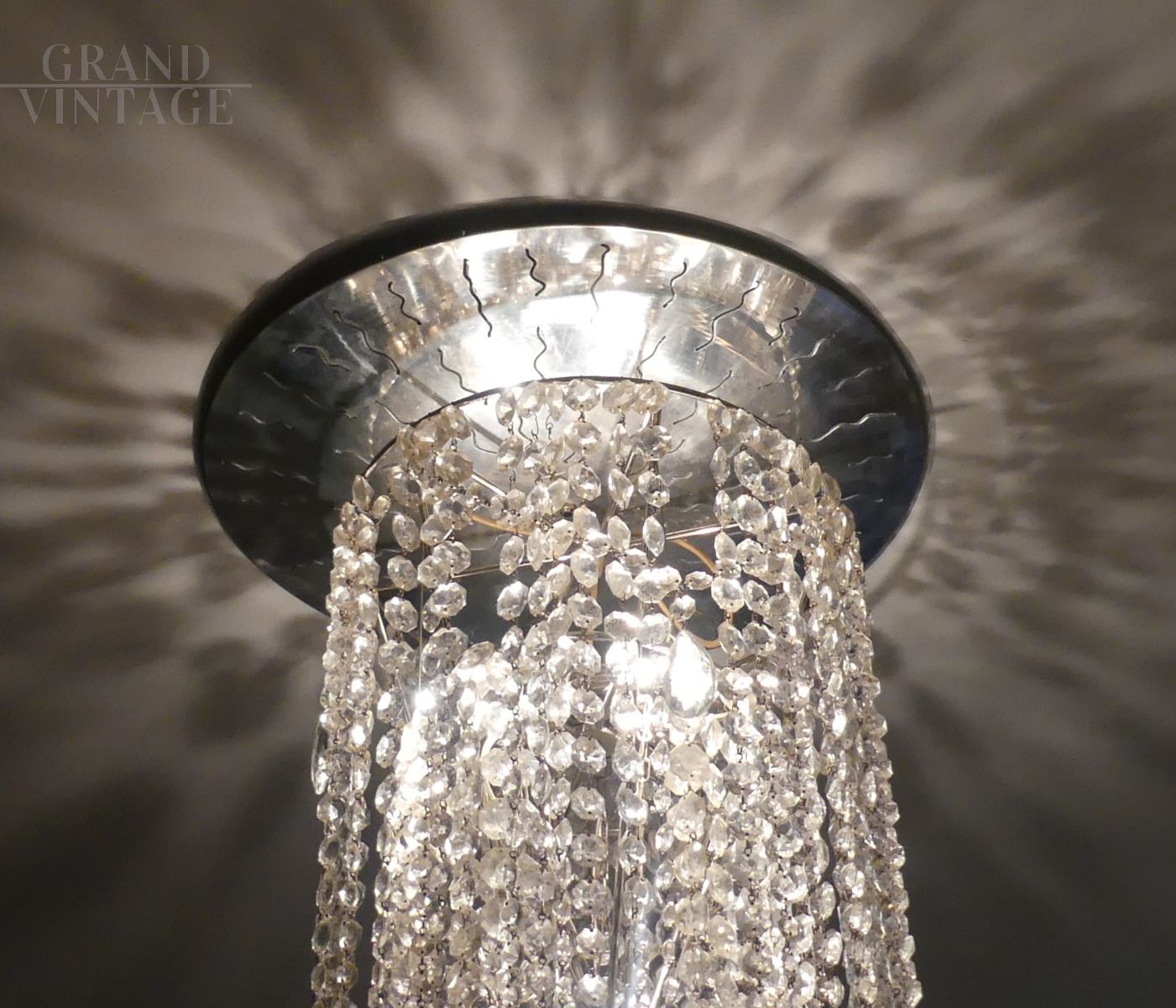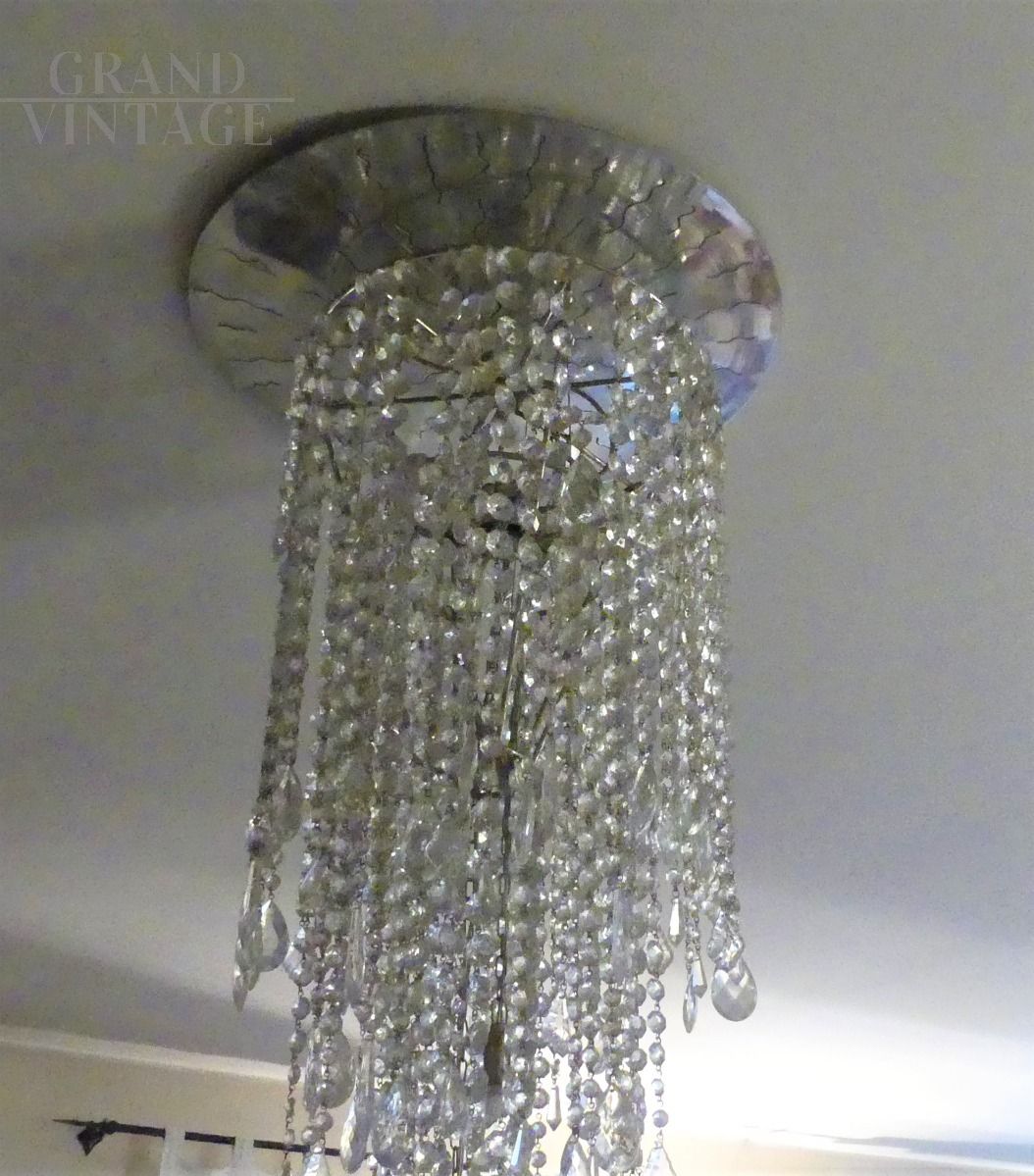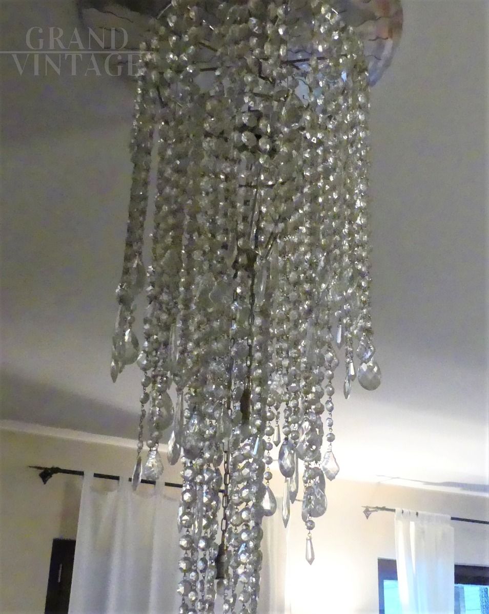 Maestoso ed elegante lampadario vintage con gocce di cristallo a cascata, anni '80.