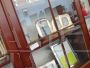 Libreria Vittoriana inglese antica in mogano a 4 ante con vetri, in buone condizioni, con qualche segno del tempo.