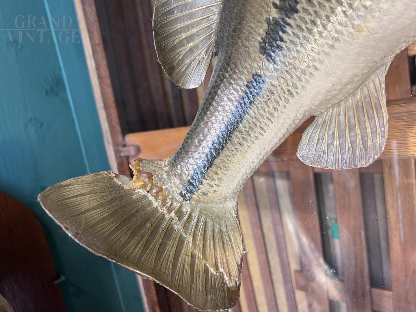 Esemplare di pesce persico trota o boccalone perfettamente conservato con la tecnica della tassidermia originale. Disponibili due esemplari come da foto, il prezzo si riferisce al singolo.
