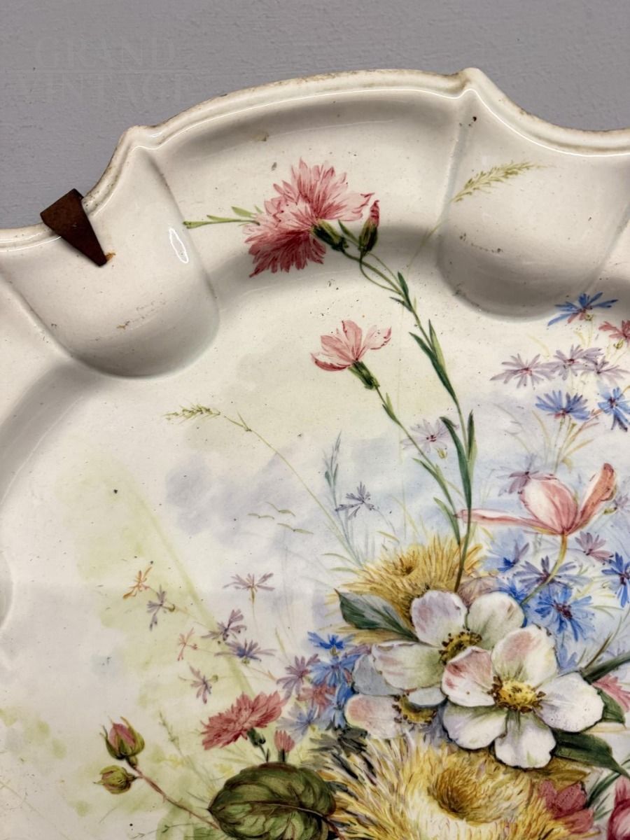 Grande piatto antico in maiolica Nove Bassano con decoro floreale