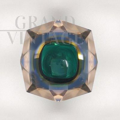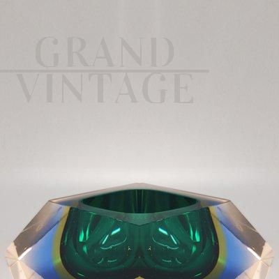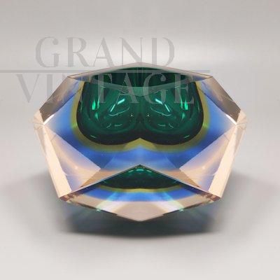 Splendido posacenere o svuotatasche di Flavio Poli per Seguso di grandi dimensioni, in vetro di Murano sommerso nei colori verde, ocra e azzurro, con superficie sfaccettata a diamante, prodotto in Italia negli anni '60. L'oggetto è in ottime condizioni.