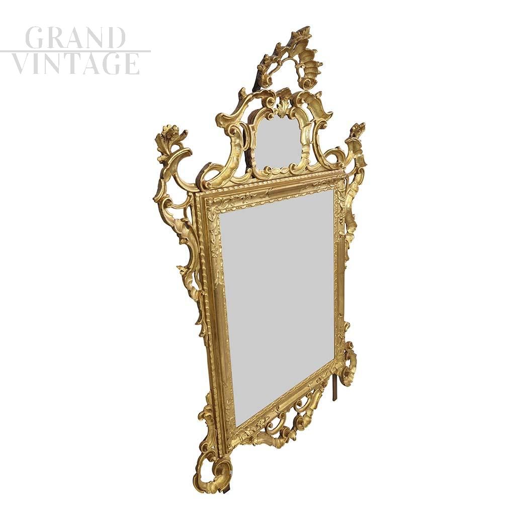 Grande specchiera Luigi XV in legno intagliato e dorato, XVIII secolo