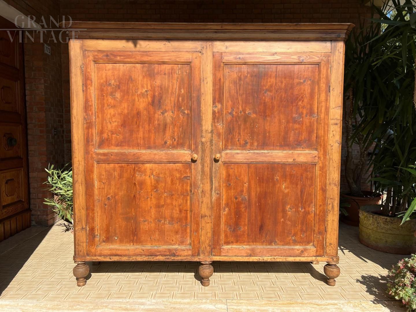 Grande stipo credenza rustica antica in abete naturale