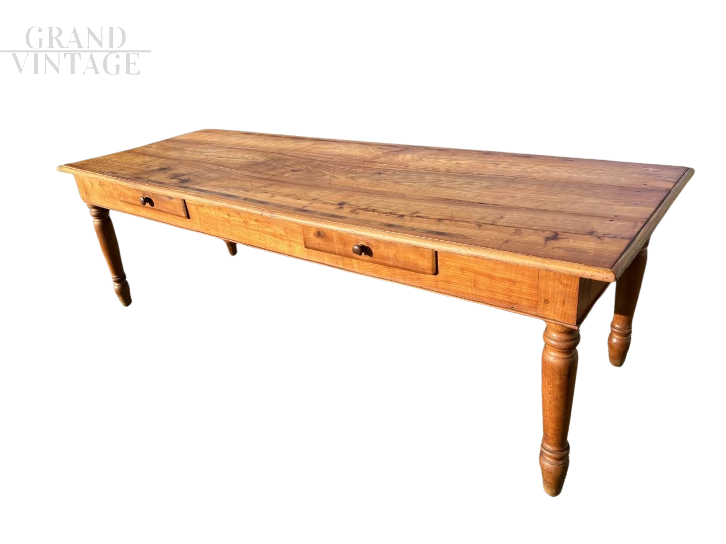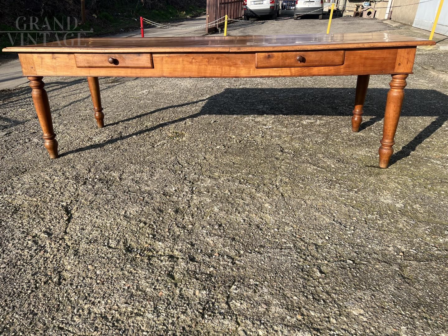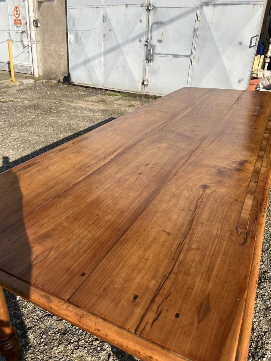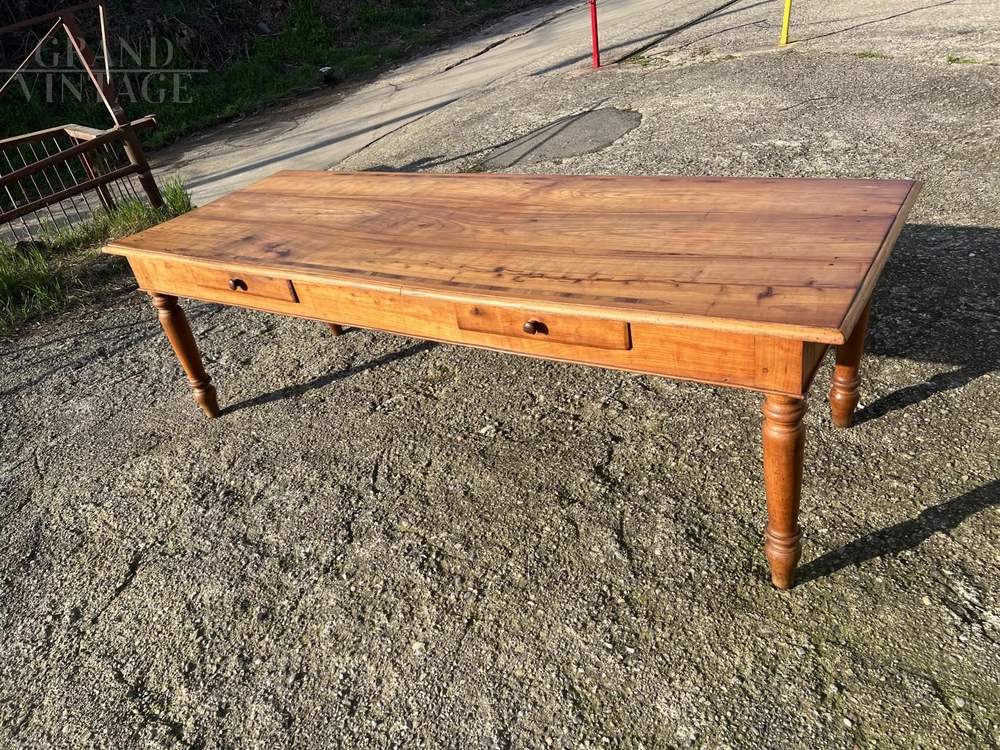 Grande tavolo antico da casale in ciliegio con intarsi, Italia '800