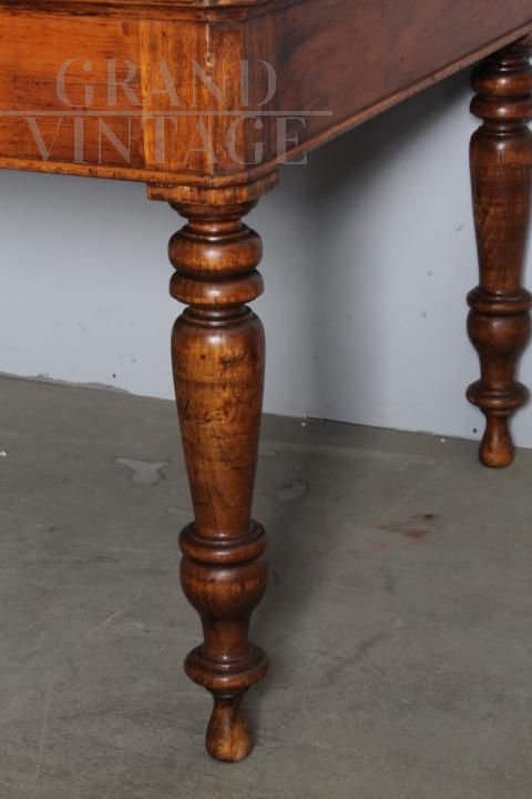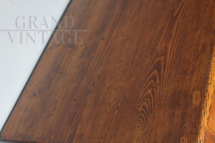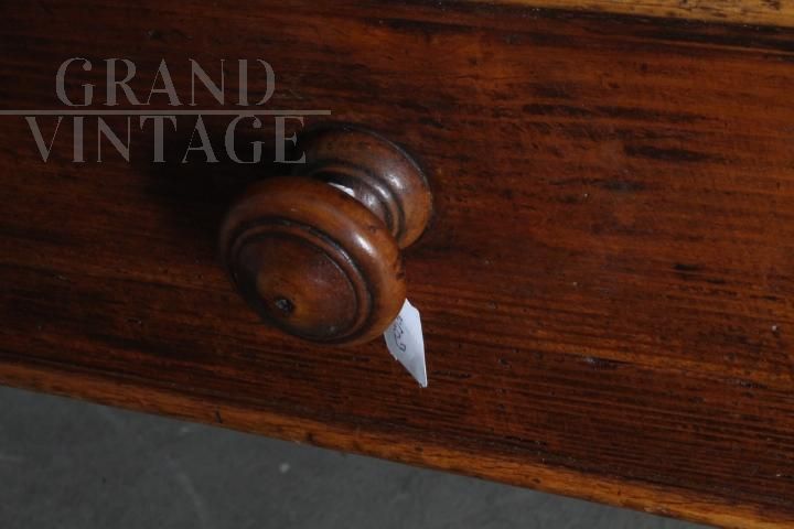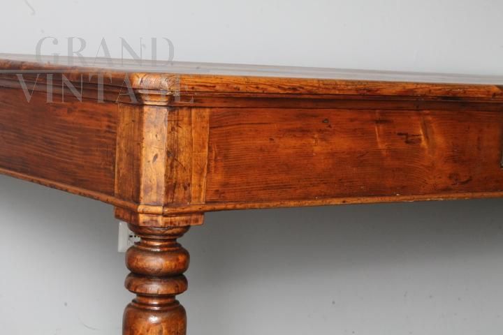 Grande tavolo antico rustico toscano, Firenze XIX secolo, in legno massello di pino con un grande cassetto centrale e con belle gambe tornite. Generose le dimensioni, anche in larghezza. Restaurato lasciando la sua patina e il suo colore al naturale, non necessita di alcun intervento.