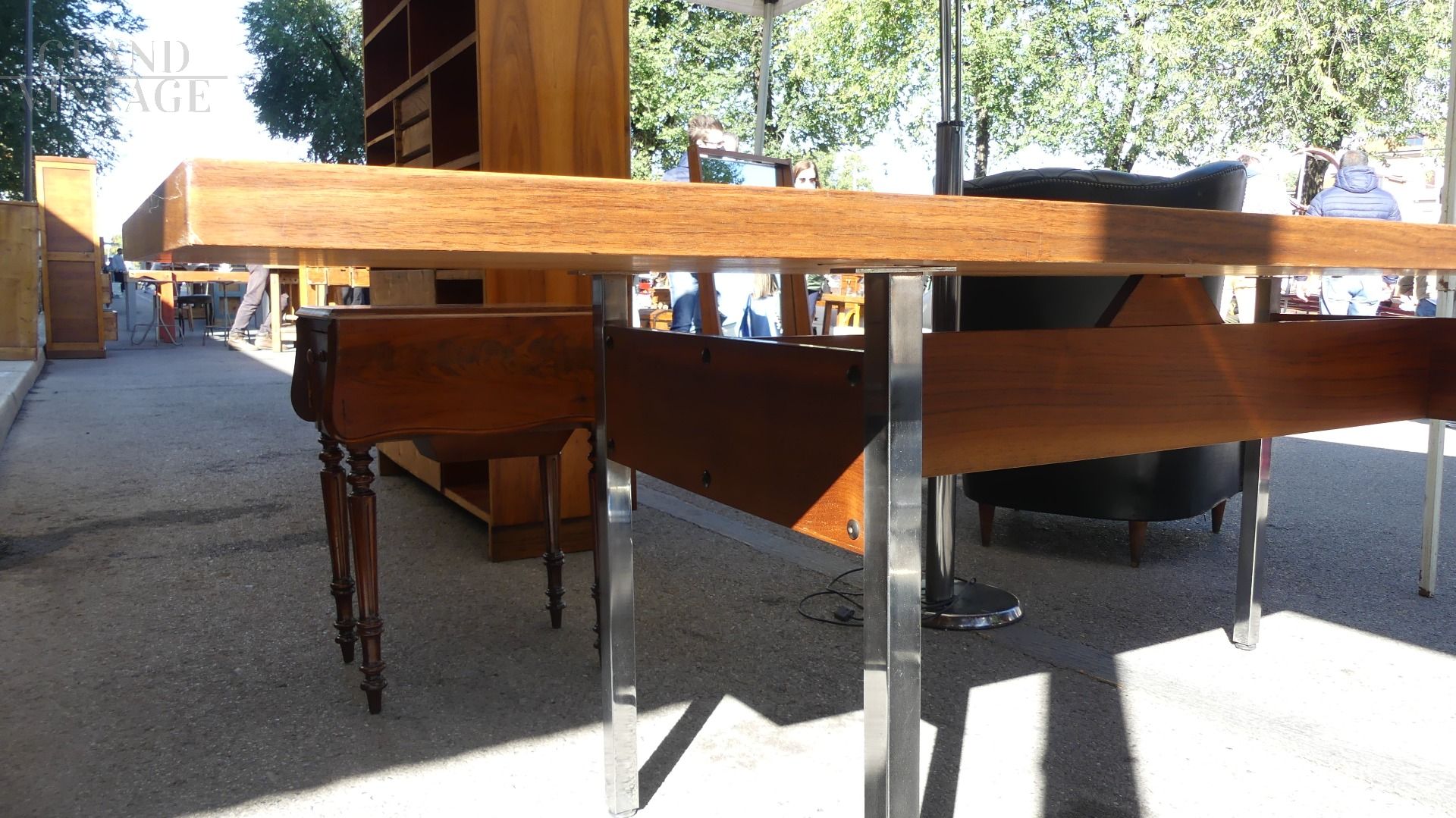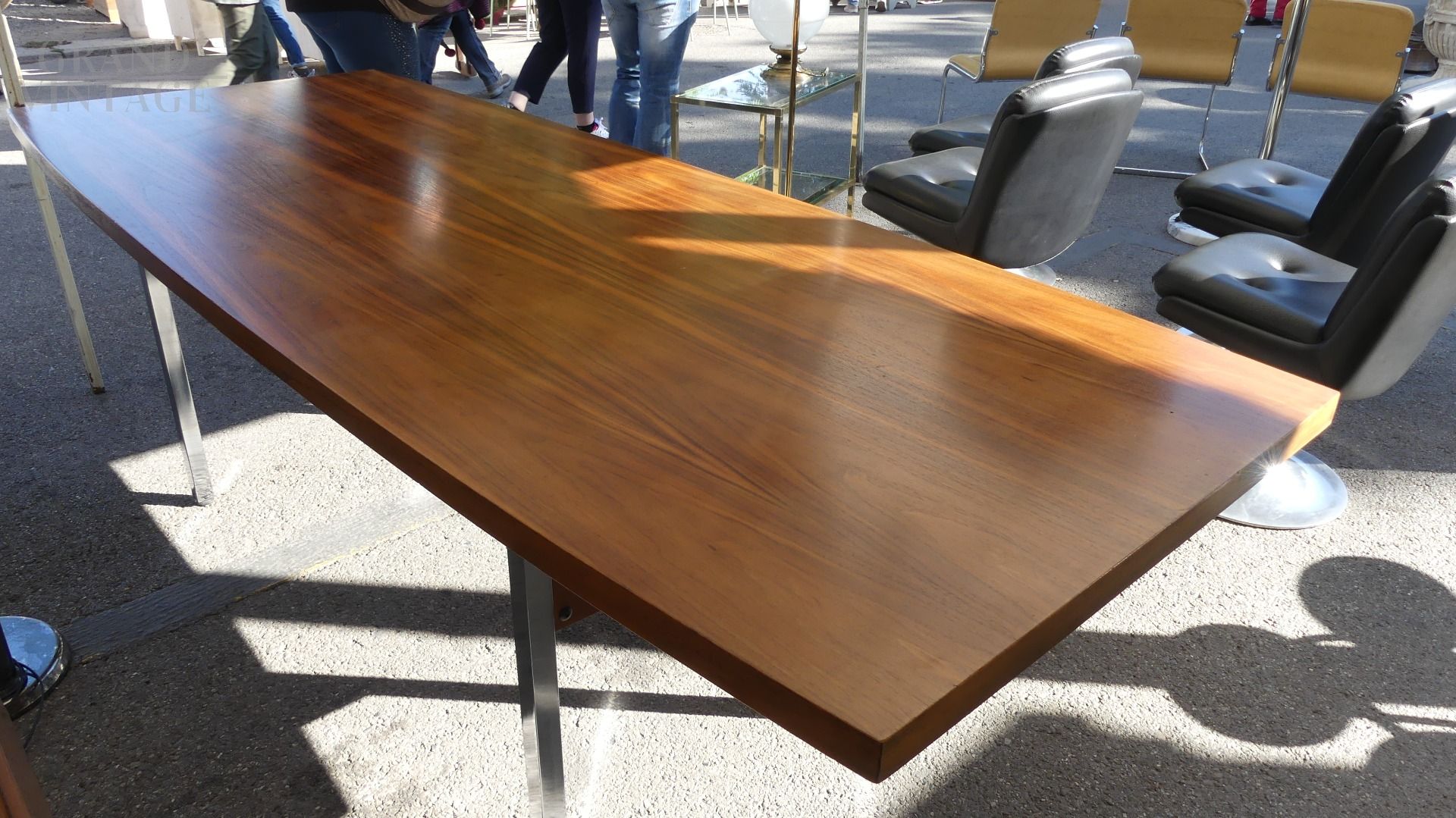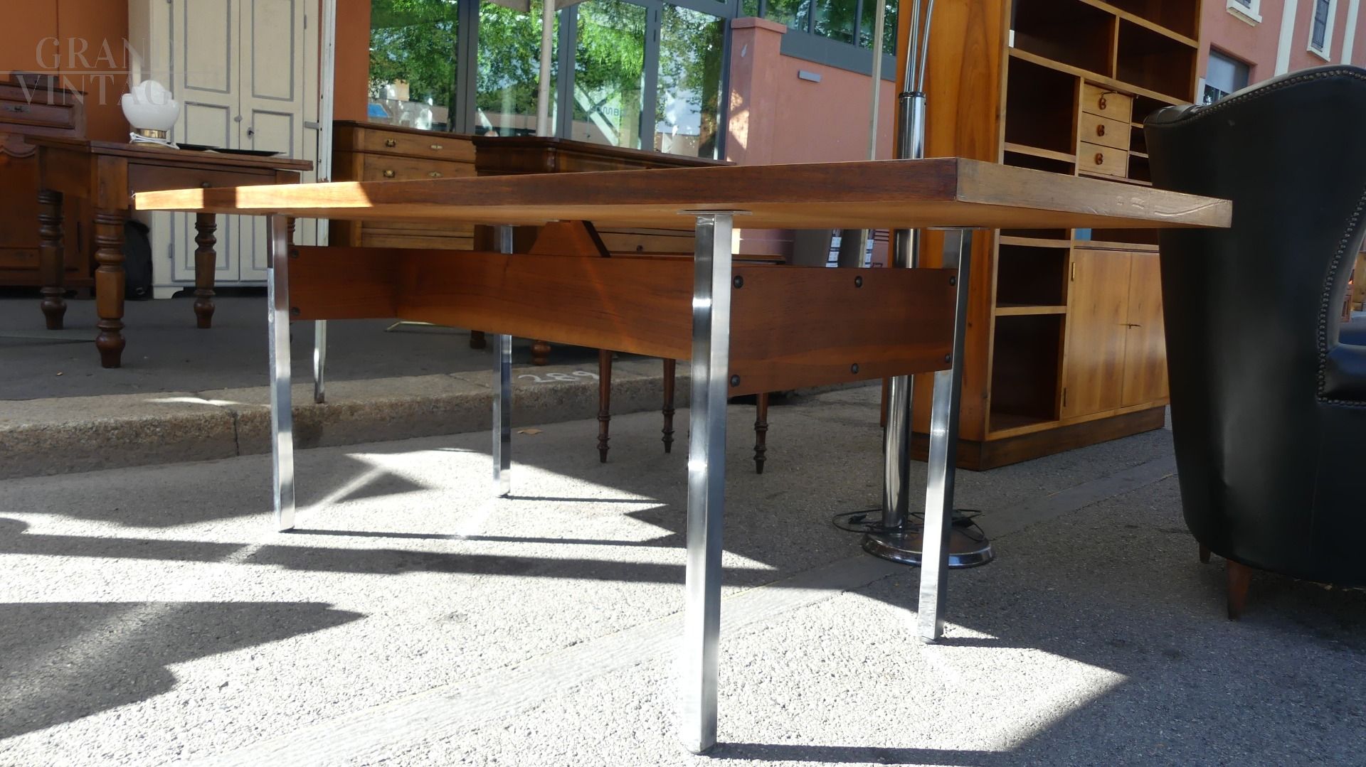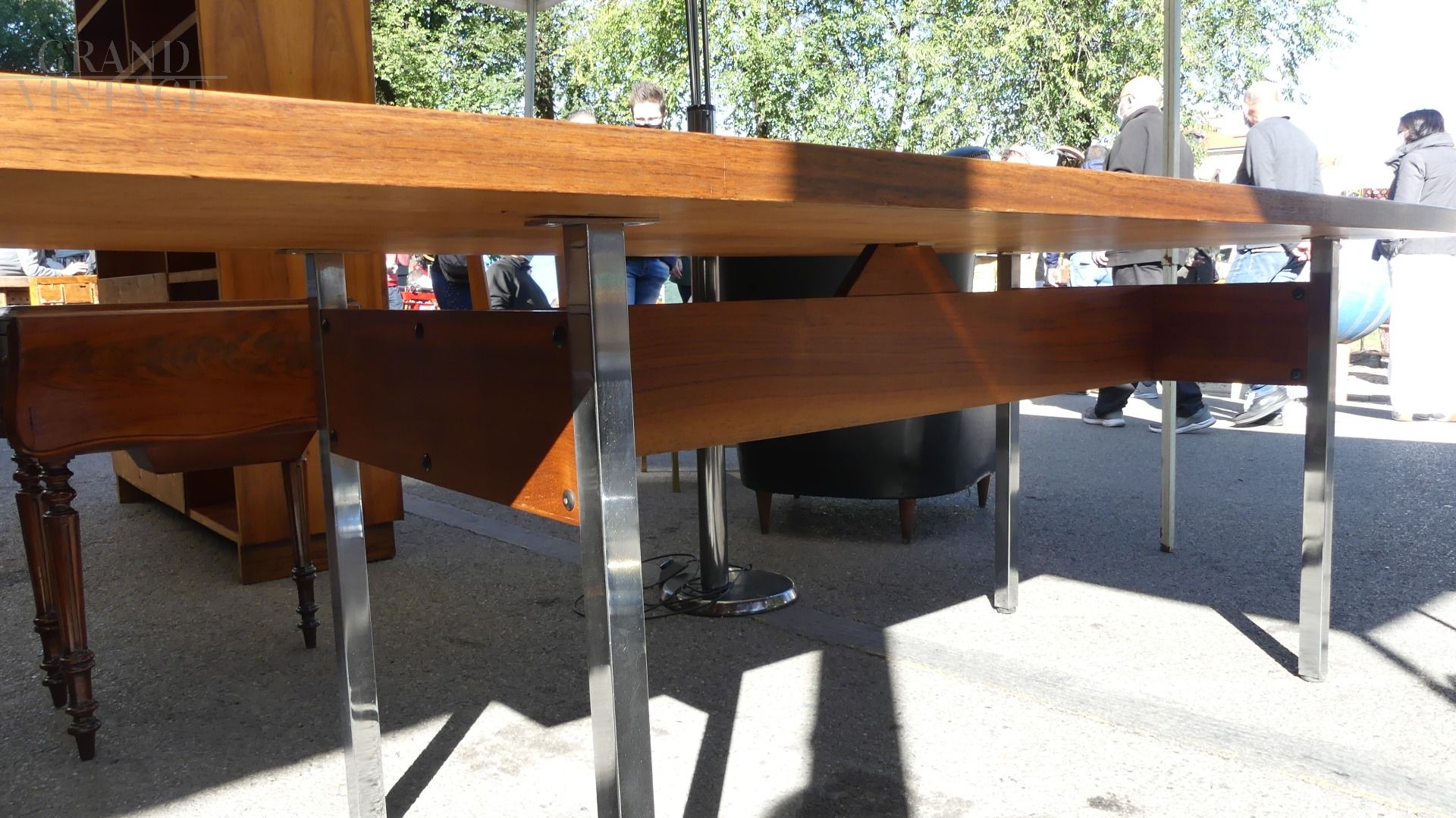 Grande tavolo da riunione by Osvaldo Borsani, vintage anni '60, in acciaio e legno lastronato in noce, ottime condizioni.