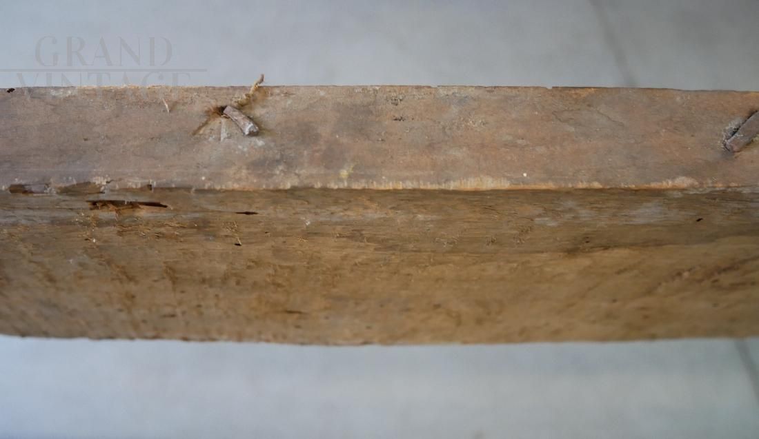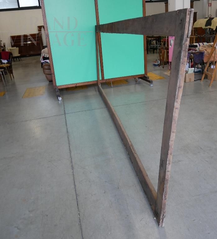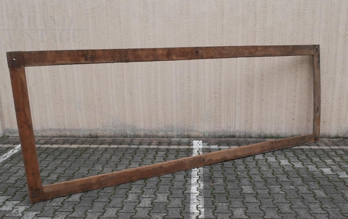 Grande cornice telaio antico in legno per dipinto proveniente dall'Italia di fine '600 - Inizio '700. Struttura antica di sostegno per dipinto di grandi dimensioni, misura 367 x 138 cm circa con uno spessore di 3 cm. Larghezza cornice 13 cm. I due lati lunghi aggiuntati in origine misurano 268 + 98 cm, 284 + 83 cm. In patina originale, non restaurata.