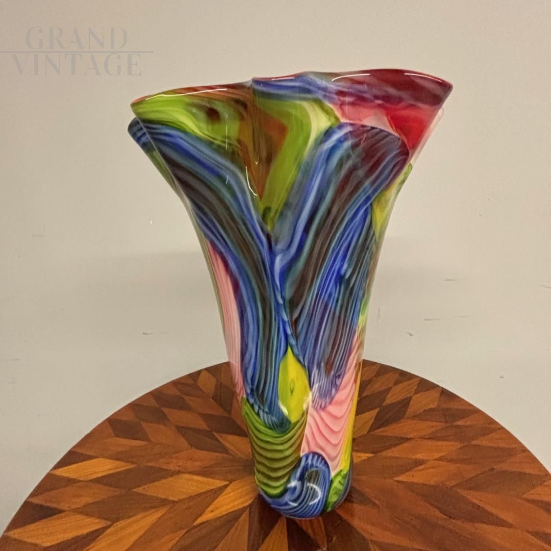 Grande vaso a fiore in vetro di Murano multicolore, anni '80