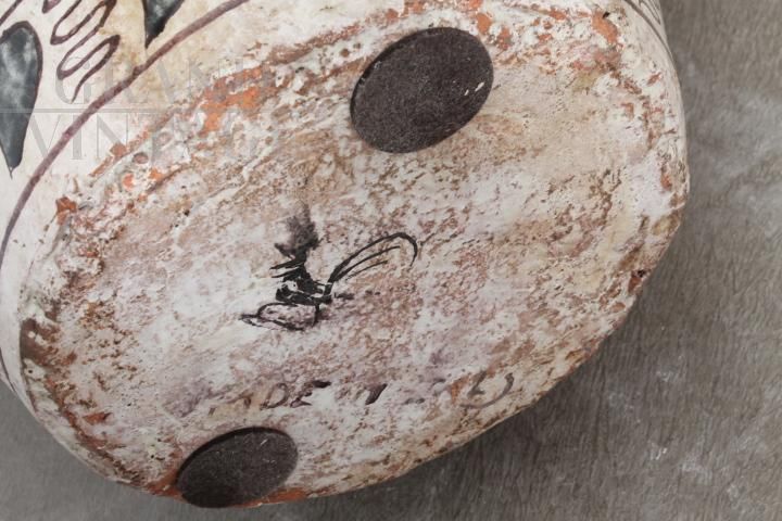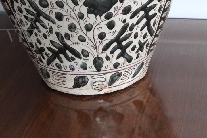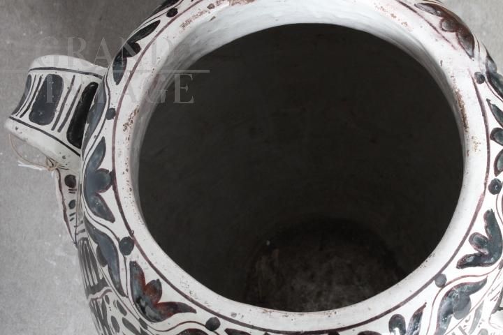 Grande vaso orcio antico Cantagalli con decoro a zaffera medievale