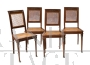 Gruppo di quattro sedie antiche in massello di mogano con innesti in bronzo