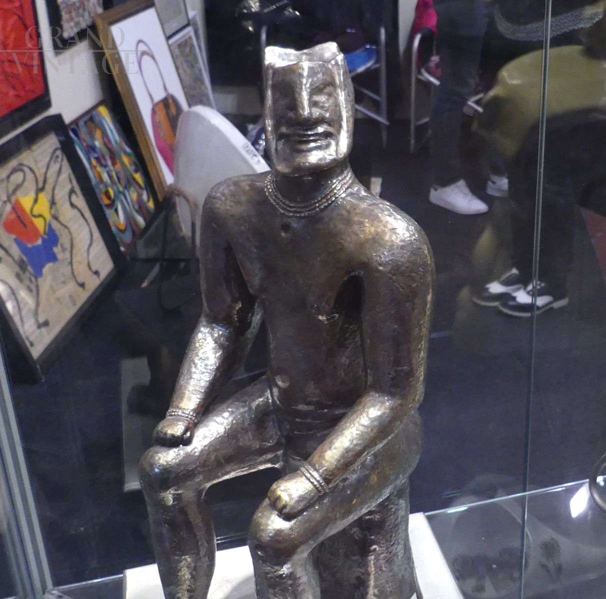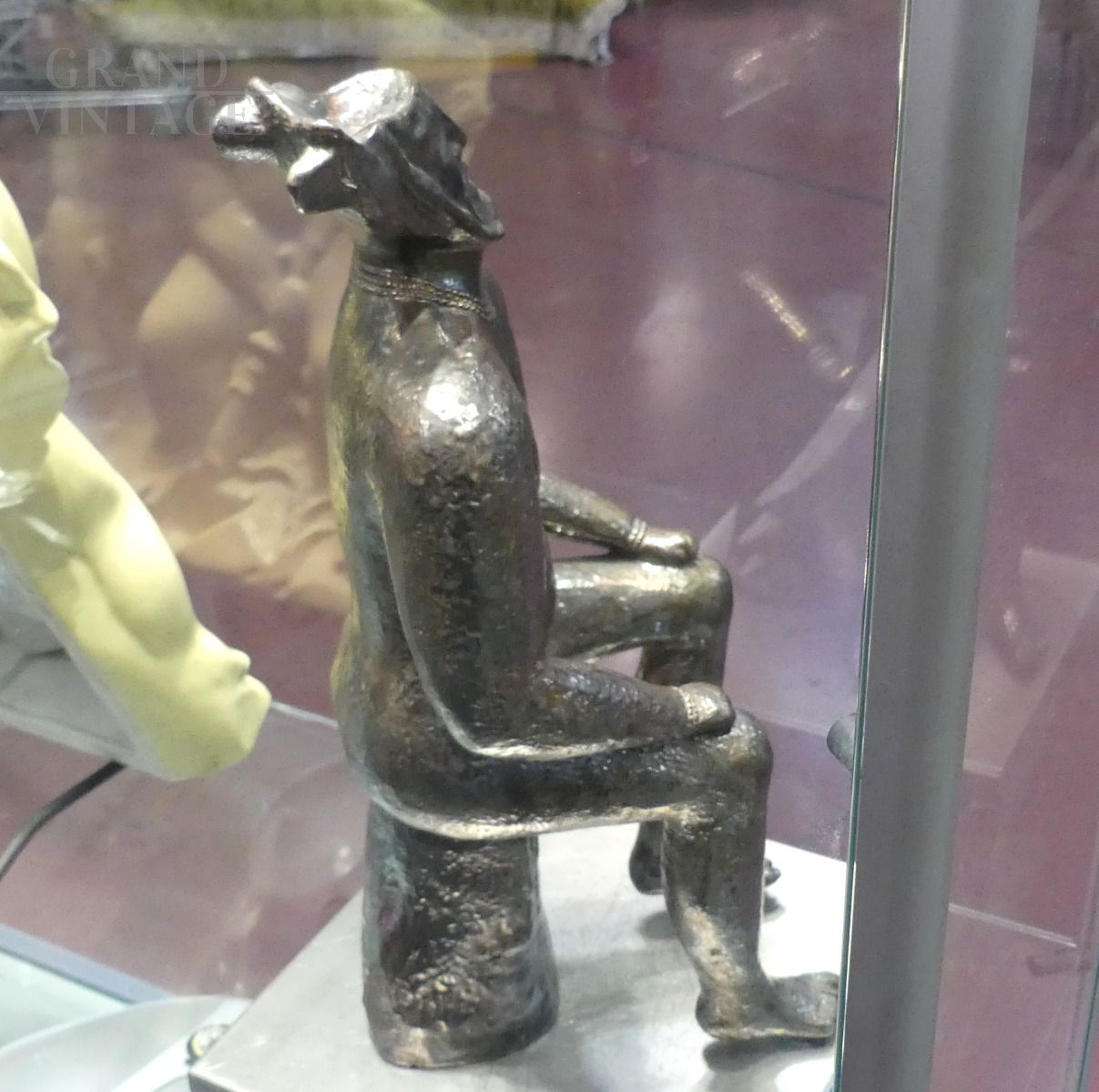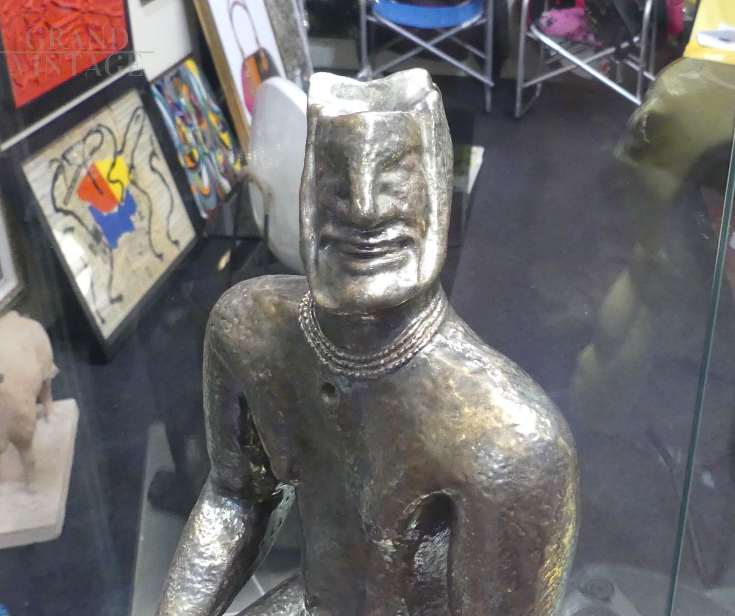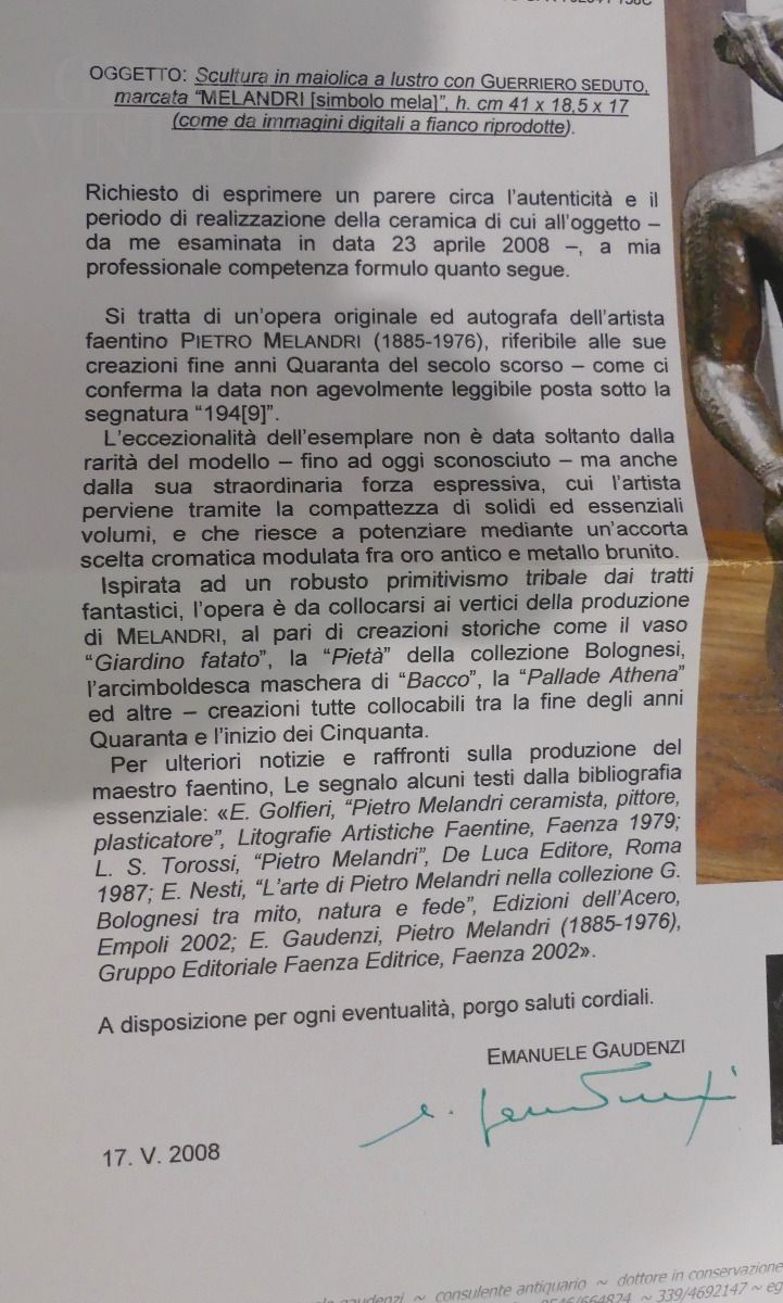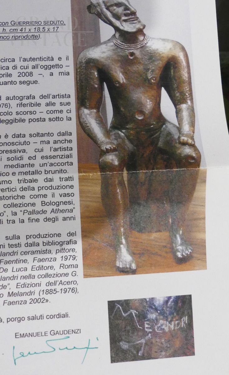 Guerriero Seduto, scultura di Pietro Melandri in maiolica a lustro, completo di autentica di Gaudenzi, massimo esperto dell'autore.