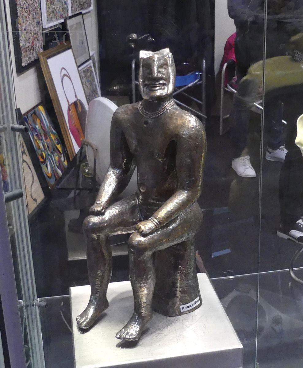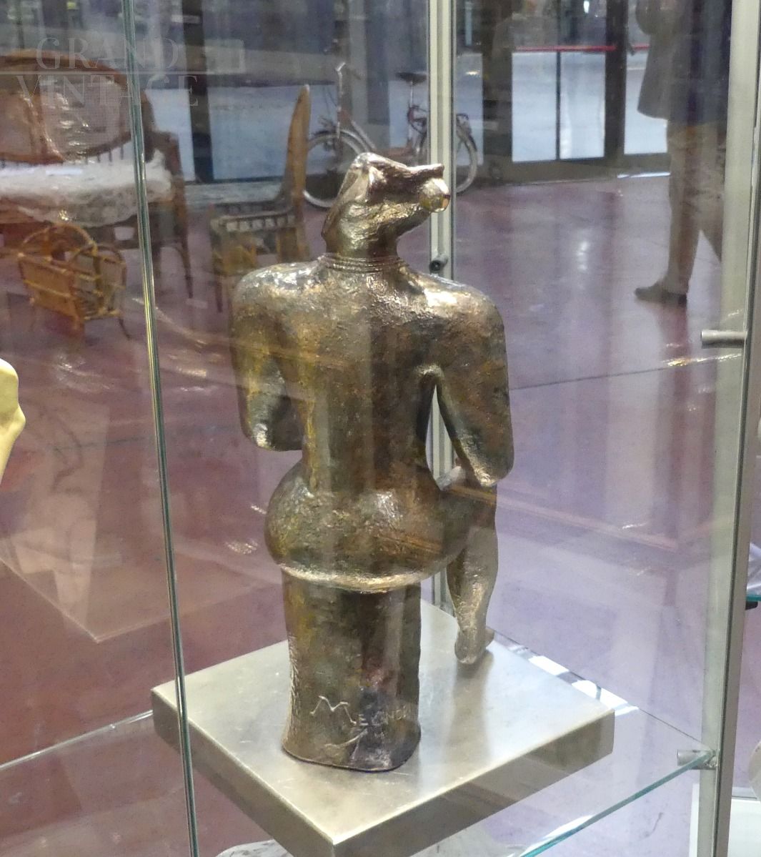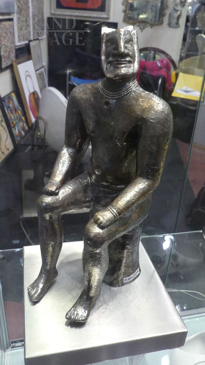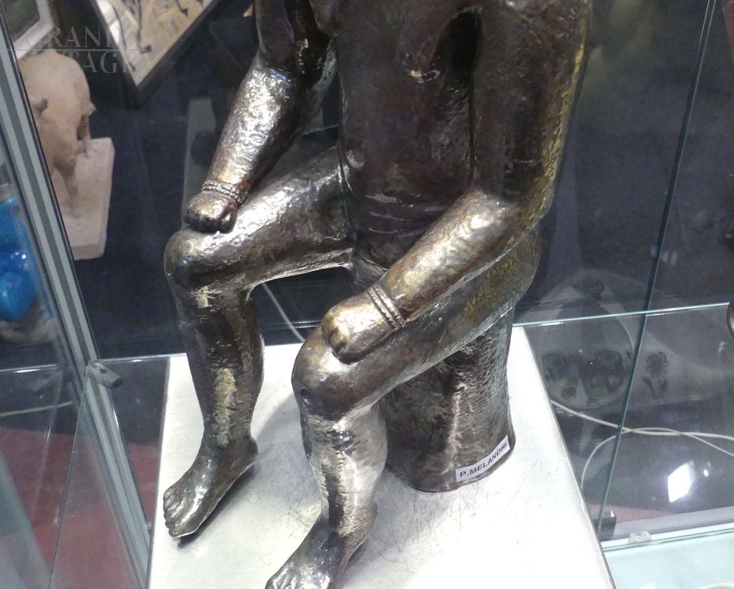 Guerriero Seduto, scultura di Pietro Melandri in maiolica a lustro, completo di autentica di Gaudenzi, massimo esperto dell'autore.