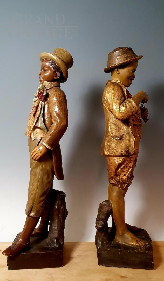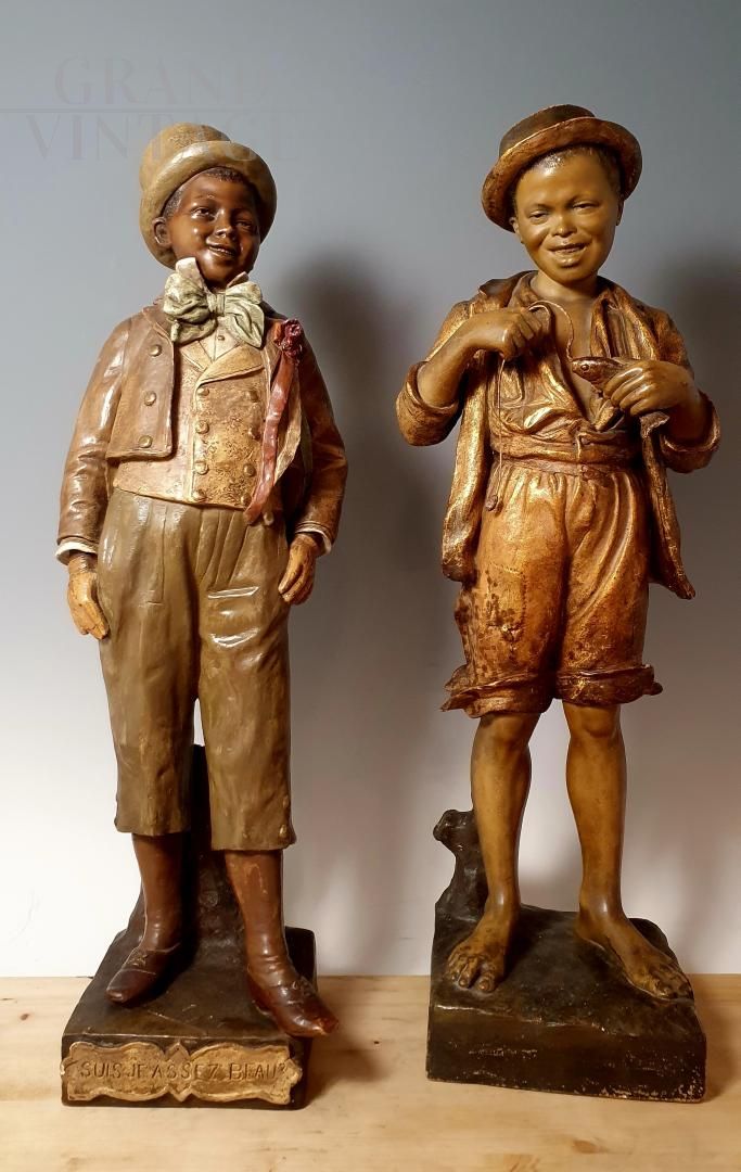 Coppia di sculture di Friederich Goldscheider in terracotta raffiguranti due moretti, uno ricco e uno povero. Le sculture sono firmate e in ottime condizioni.