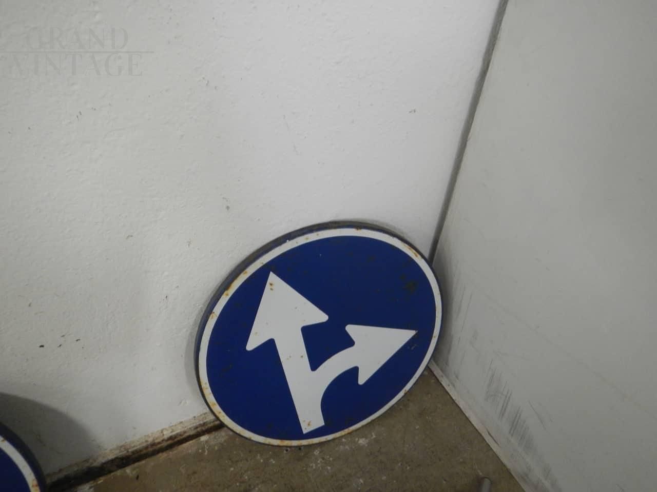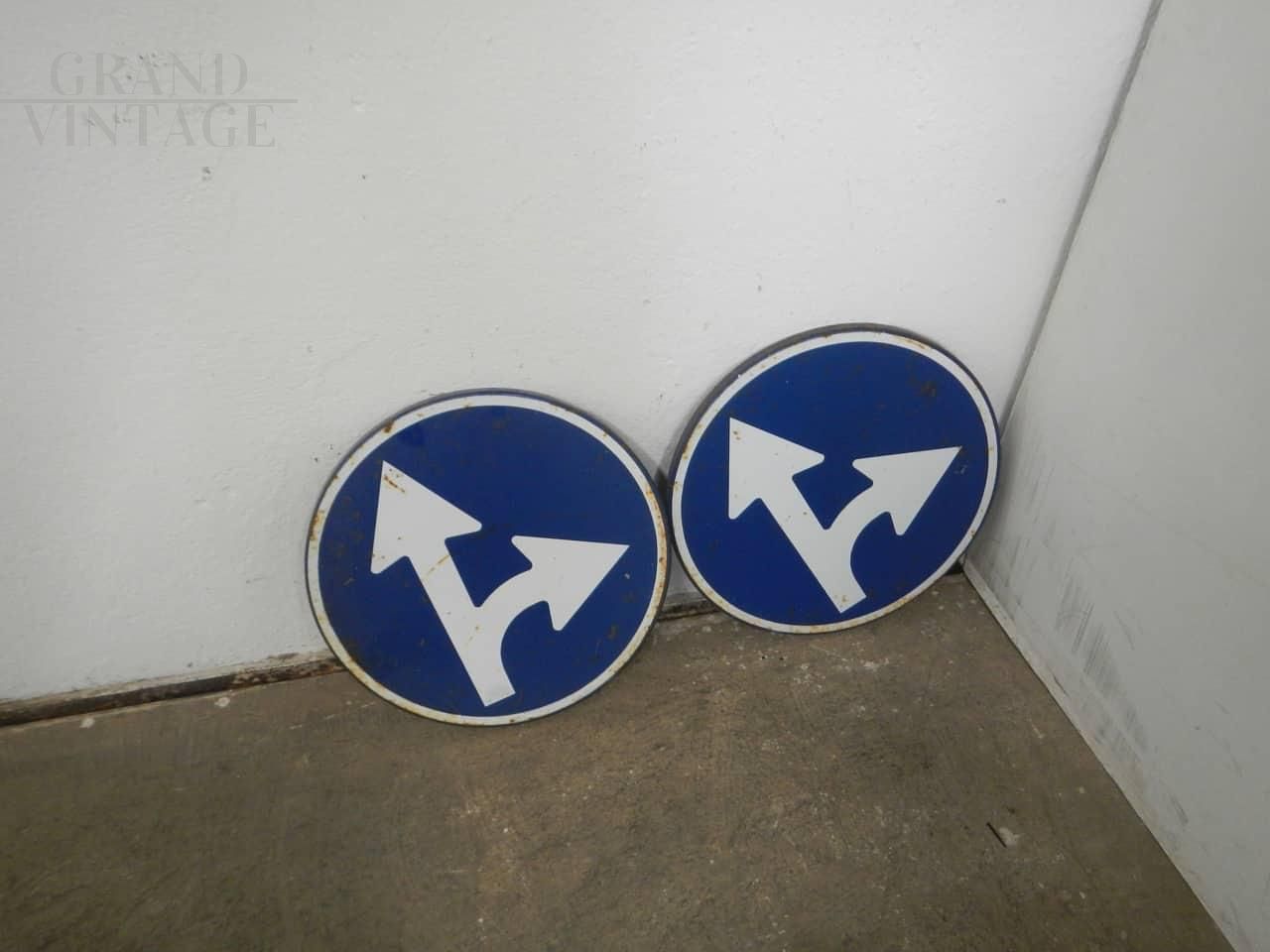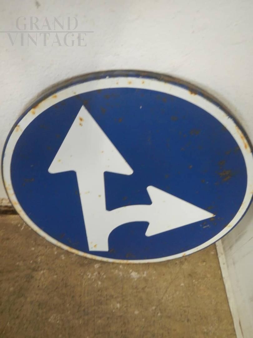 Insegna stradale italiana con frecce direzionali. Struttura buona con naturali segni d'uso consistenti. Disponibili 2 pezzi.