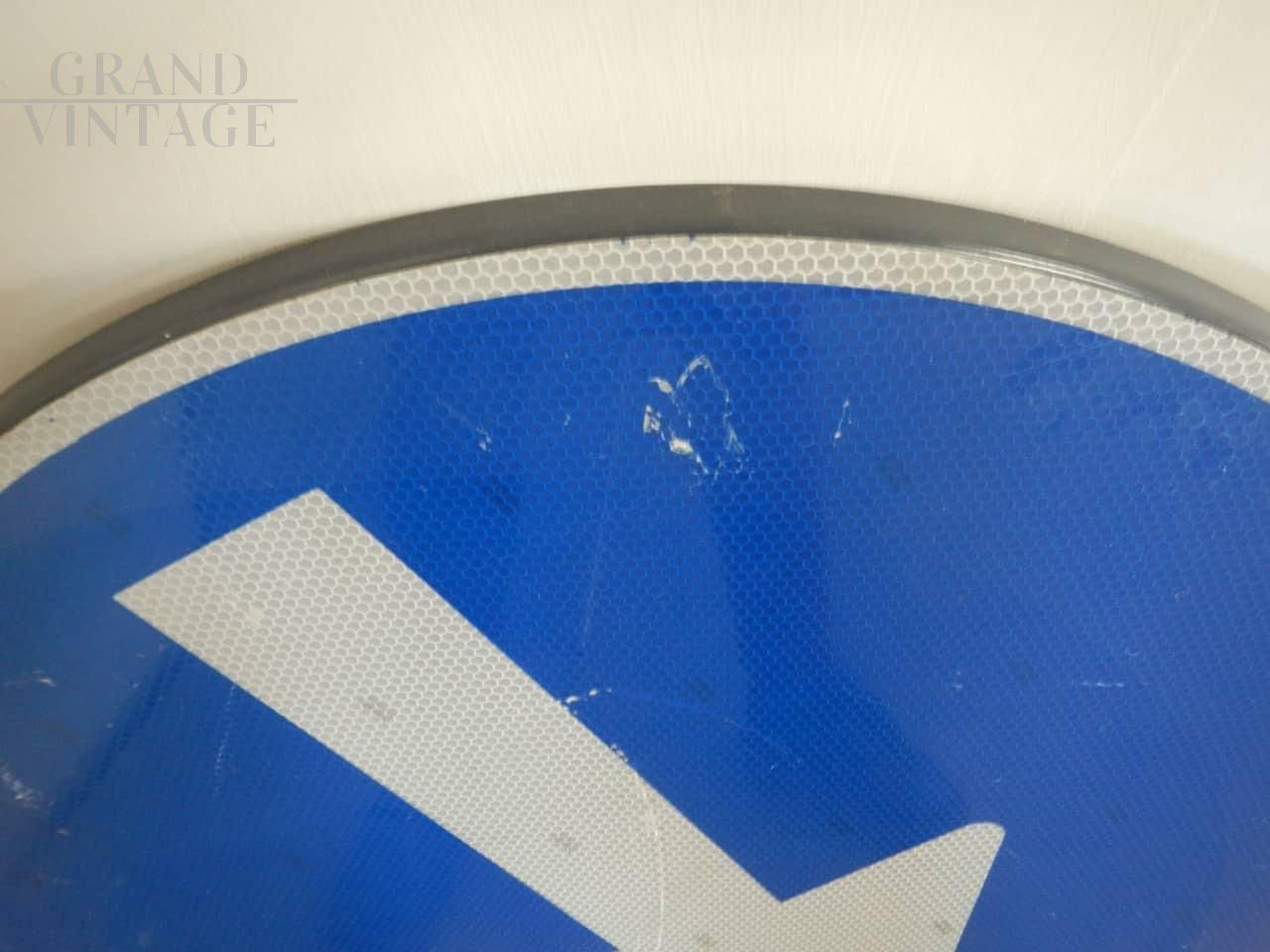 Insegna stradale vintage di direzione obbligatoria, Italia 1990