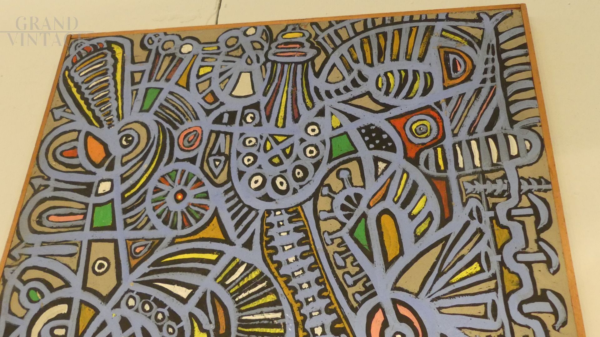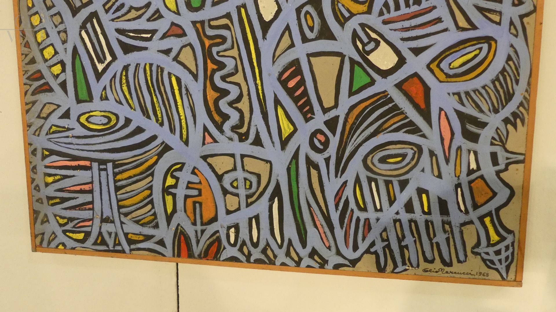 Dipinto di Elio Marcucci dal titolo Intrico, precursore dello stile Pop-Art, acrilico su tavola, firmato e datato 1968.
