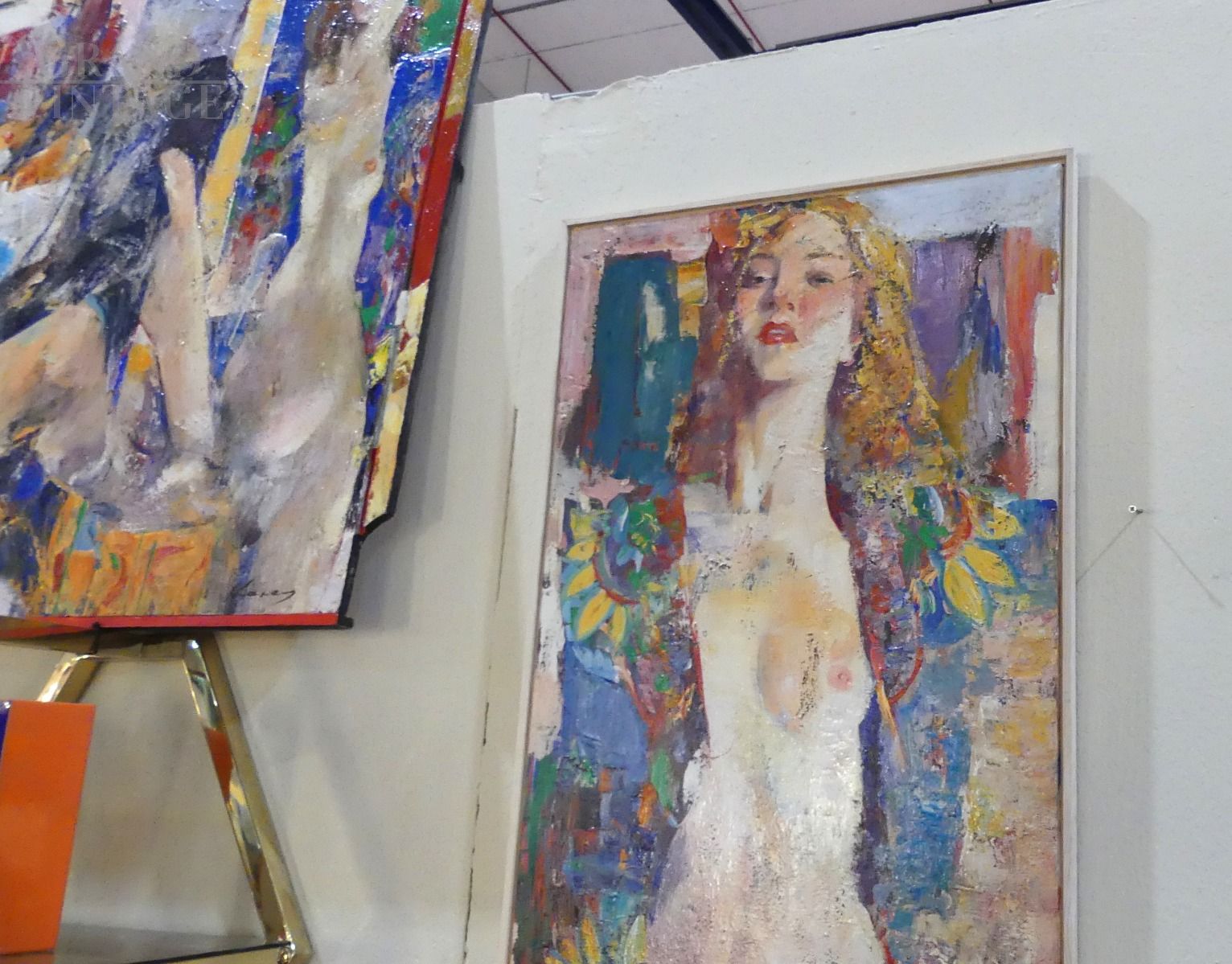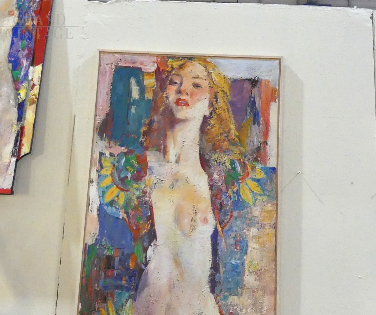 Dipinto del pittore Ucraino Ivan Karas raffigurante nudo di donna, tecnica mista su tela dai colori brillanti e dal particolare formato verticale con misure 123 x 64 cm.