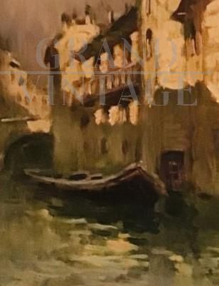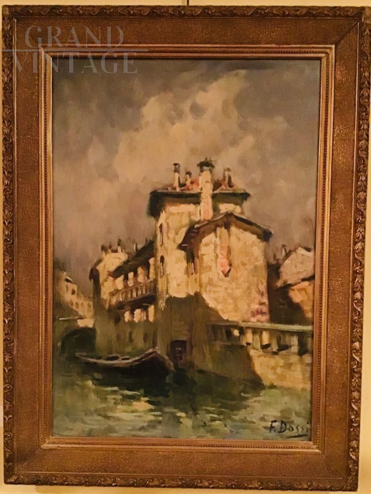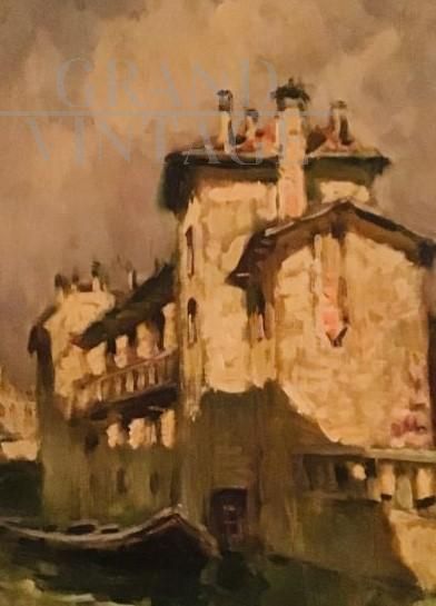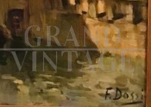 Ivan Karpof La Conca del Naviglio, olio su tela. (Firmato F. Dossi)